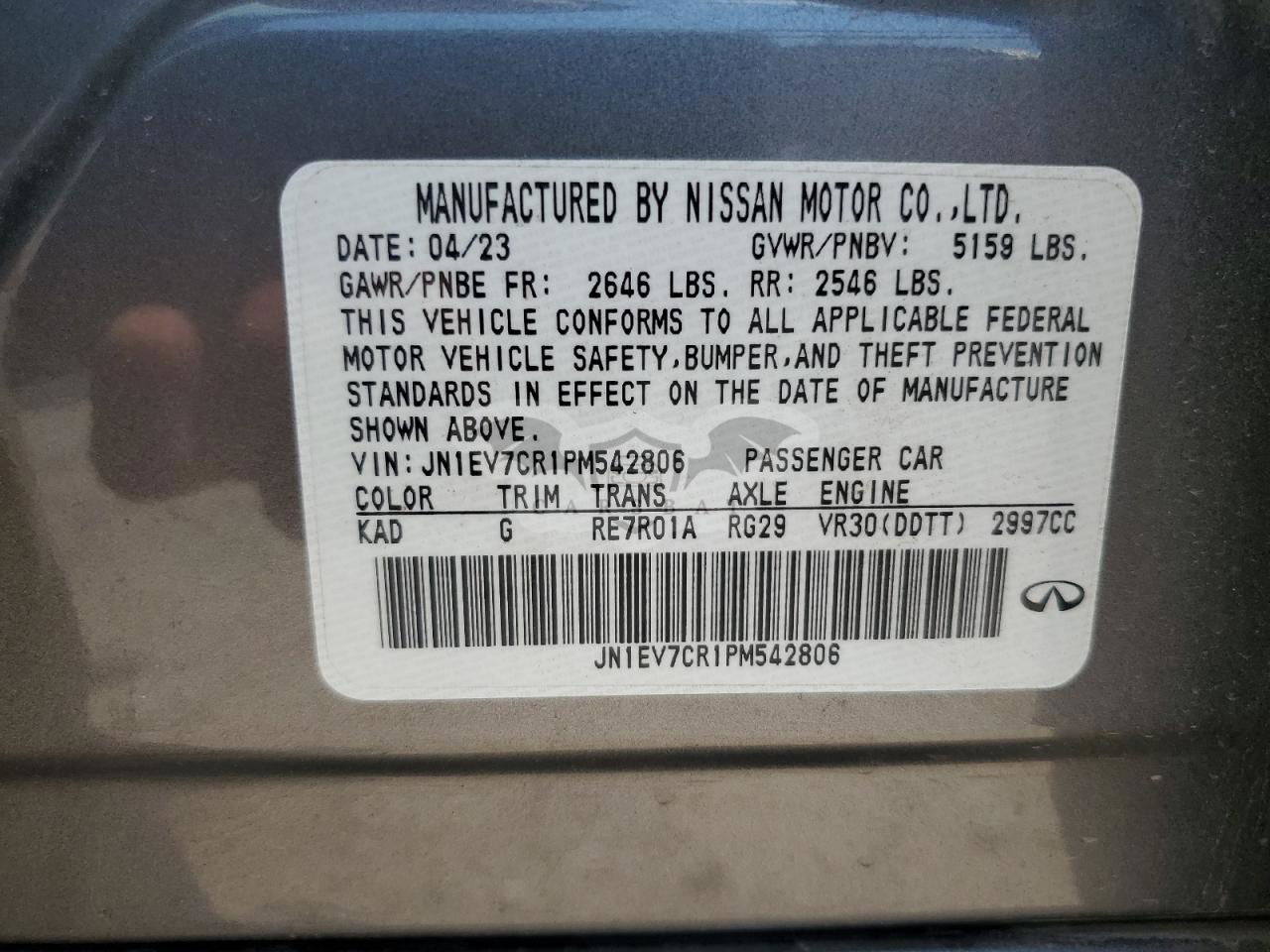 • VIN: JN1EV7CR1PM542806