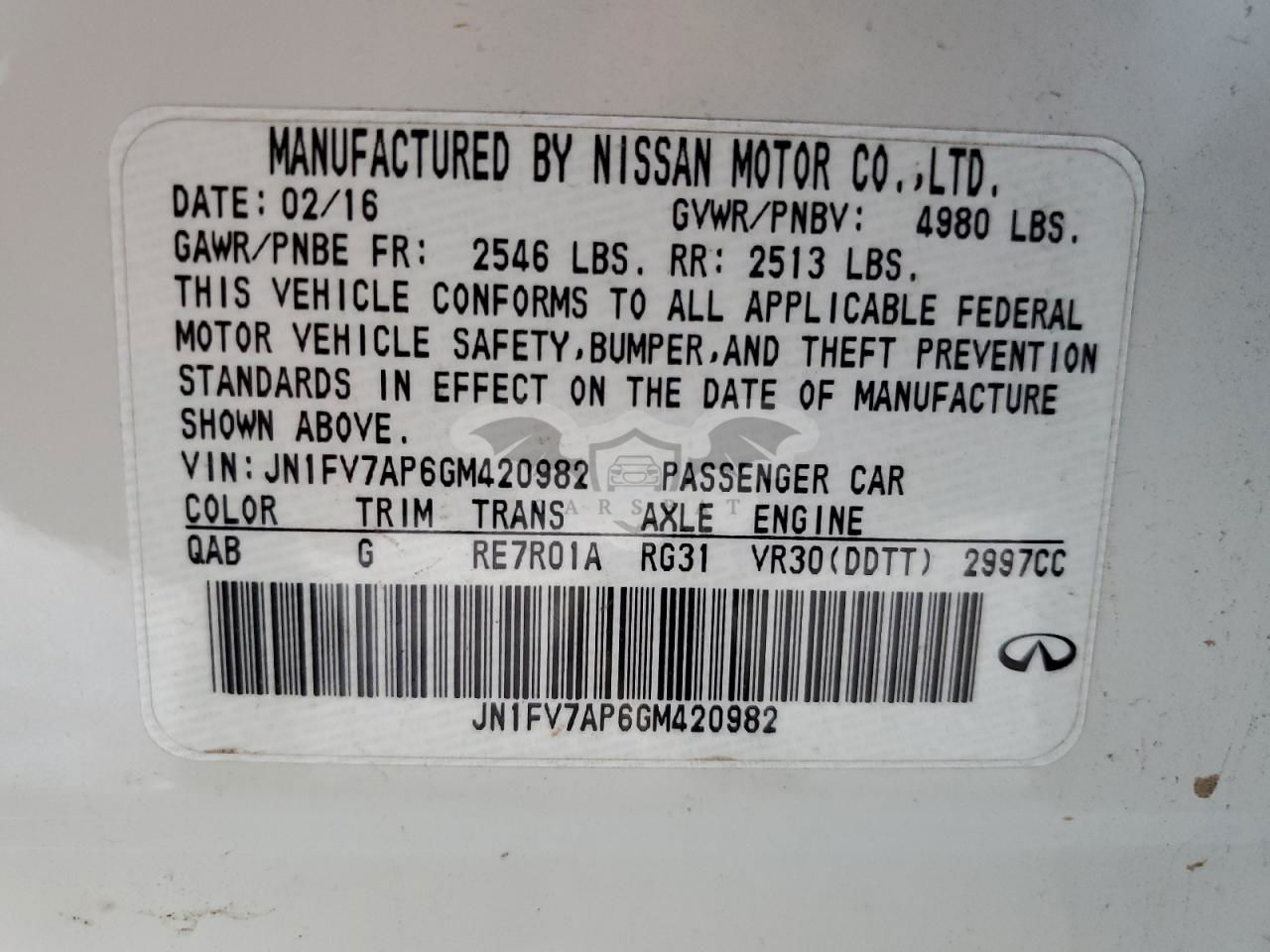 • VIN: JN1FV7AP6GM420982