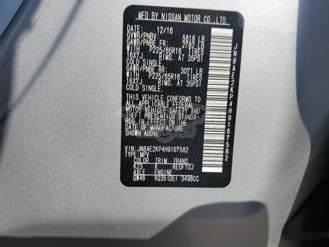 • VIN: JN8AE2KP4H9167582