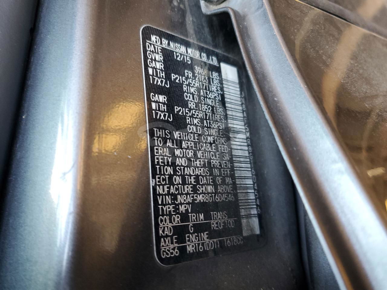 • VIN: JN8AF5MR8GT604546