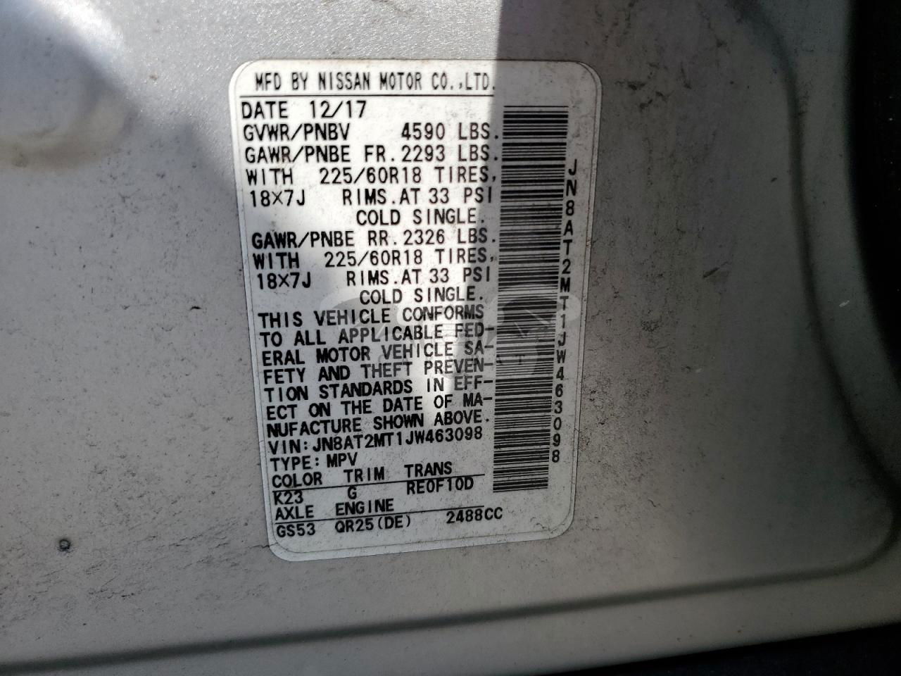 • VIN: JN8AT2MT1JW463098