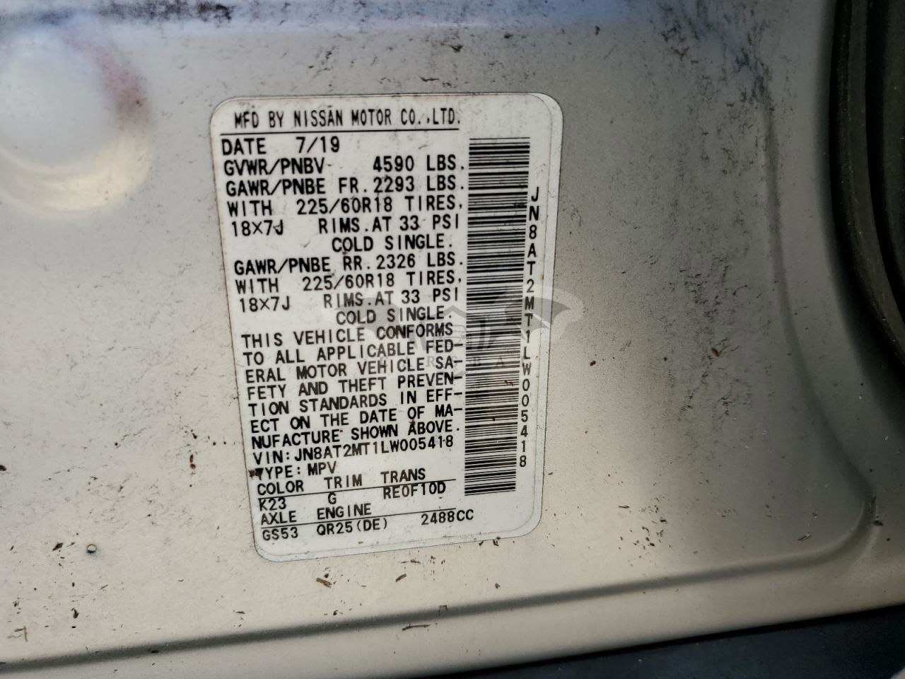 • VIN: JN8AT2MT1LW005418