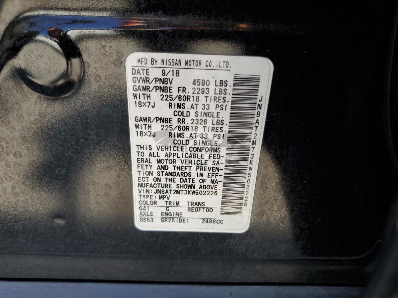 • VIN: JN8AT2MT3KW502226