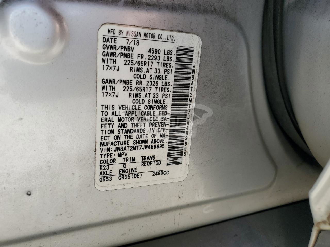 • VIN: JN8AT2MT7JW489995