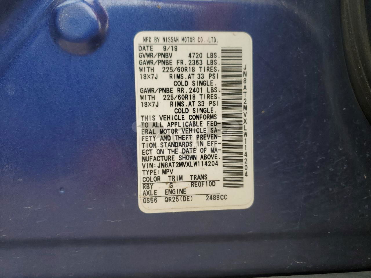 • VIN: JN8AT2MVXLW114204