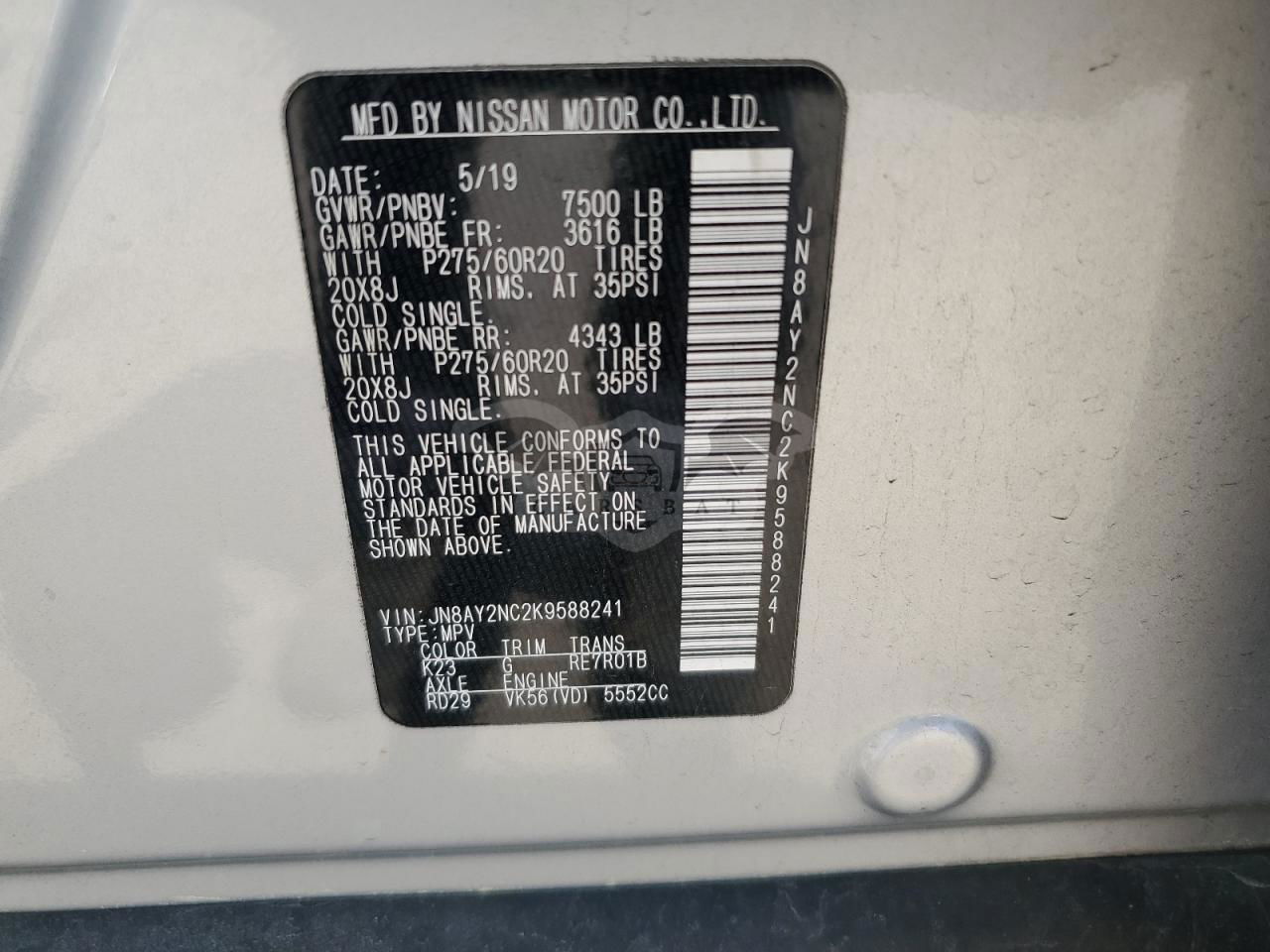 • VIN: JN8AY2NC2K9588241