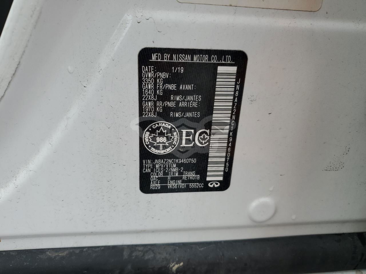 • VIN: JN8AZ2NC1K9460750