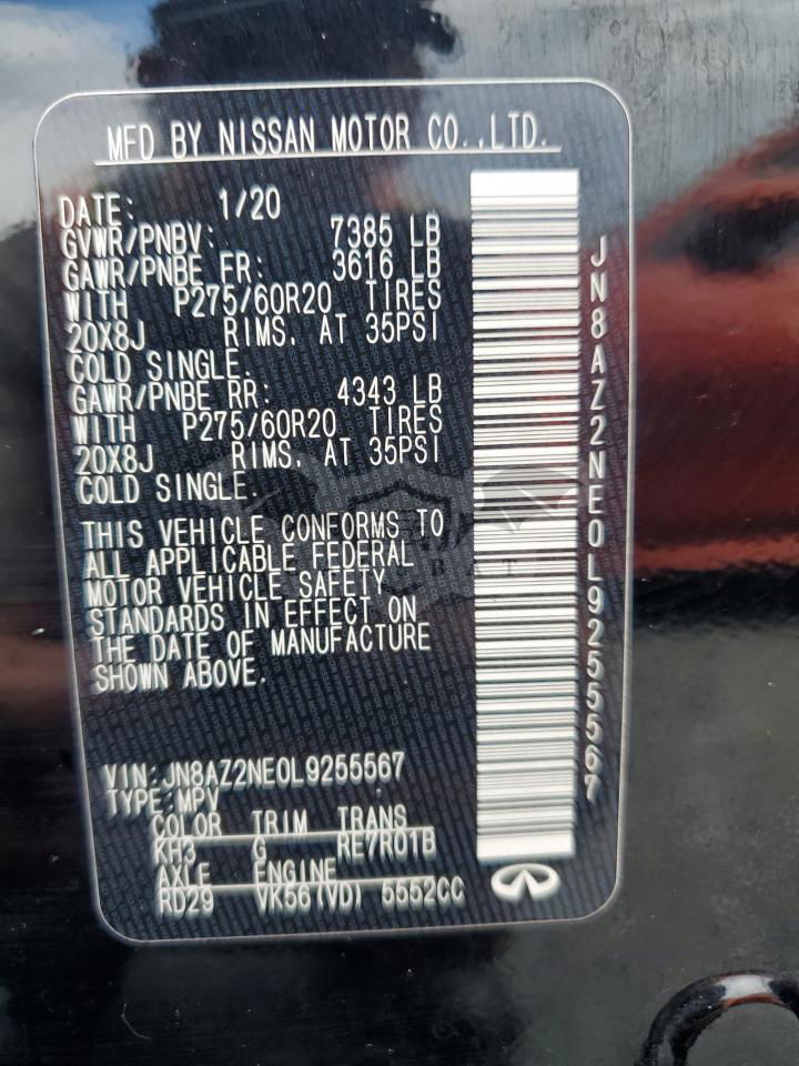 Czarny Infiniti QX80 LUXE 5.6L 8 2020 roku | Benzyna