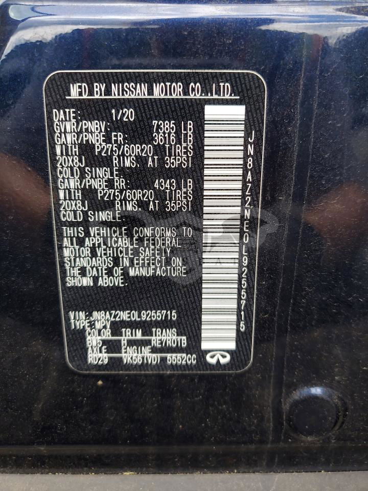 Niebieski Infiniti QX80 LUXE 5.6L 8 2020 roku | Benzyna