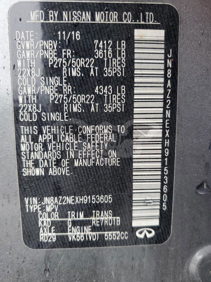 Szary Infiniti QX80 BASE 5.6L 8 2017 roku | Benzyna