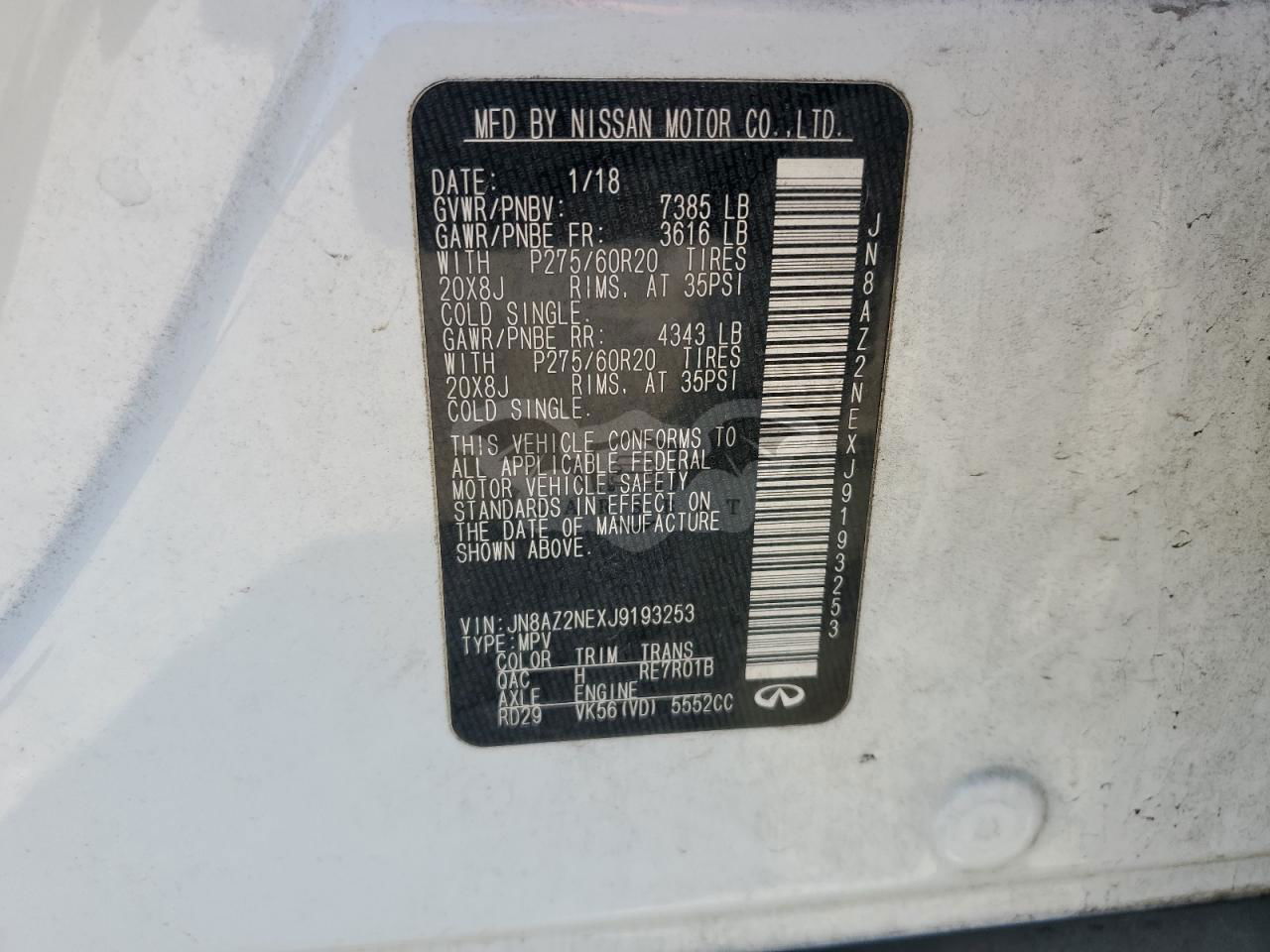 • VIN: JN8AZ2NEXJ9193253