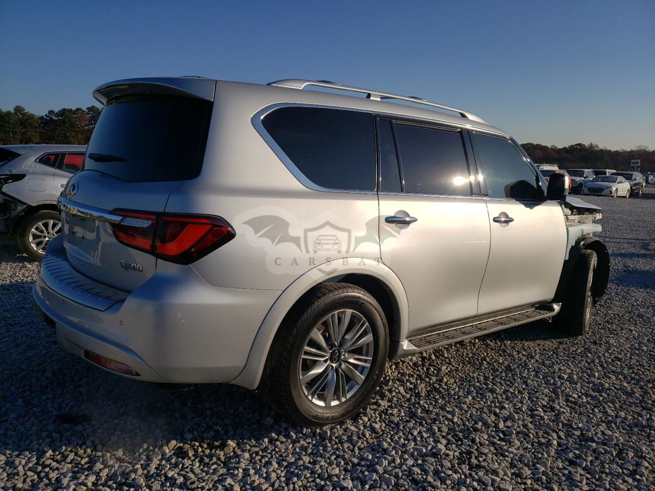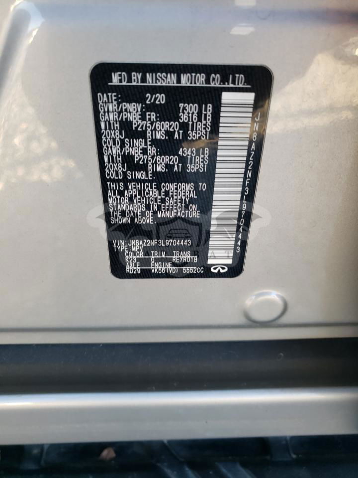 Srebrny Infiniti QX80 LUXE 5.6L 8 2020 roku | Benzyna