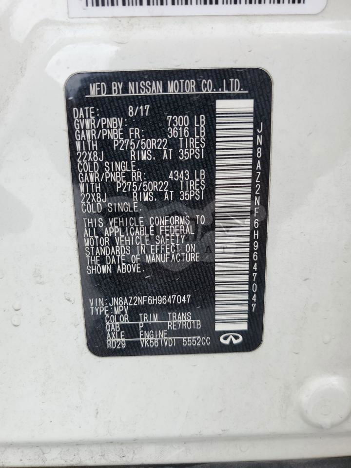 Biały Infiniti QX80 BASE 5.6L 8 2017 roku | Benzyna