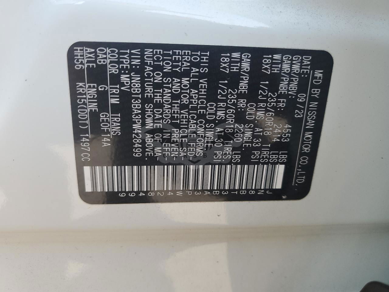 • VIN: JN8BT3BA3PW428499