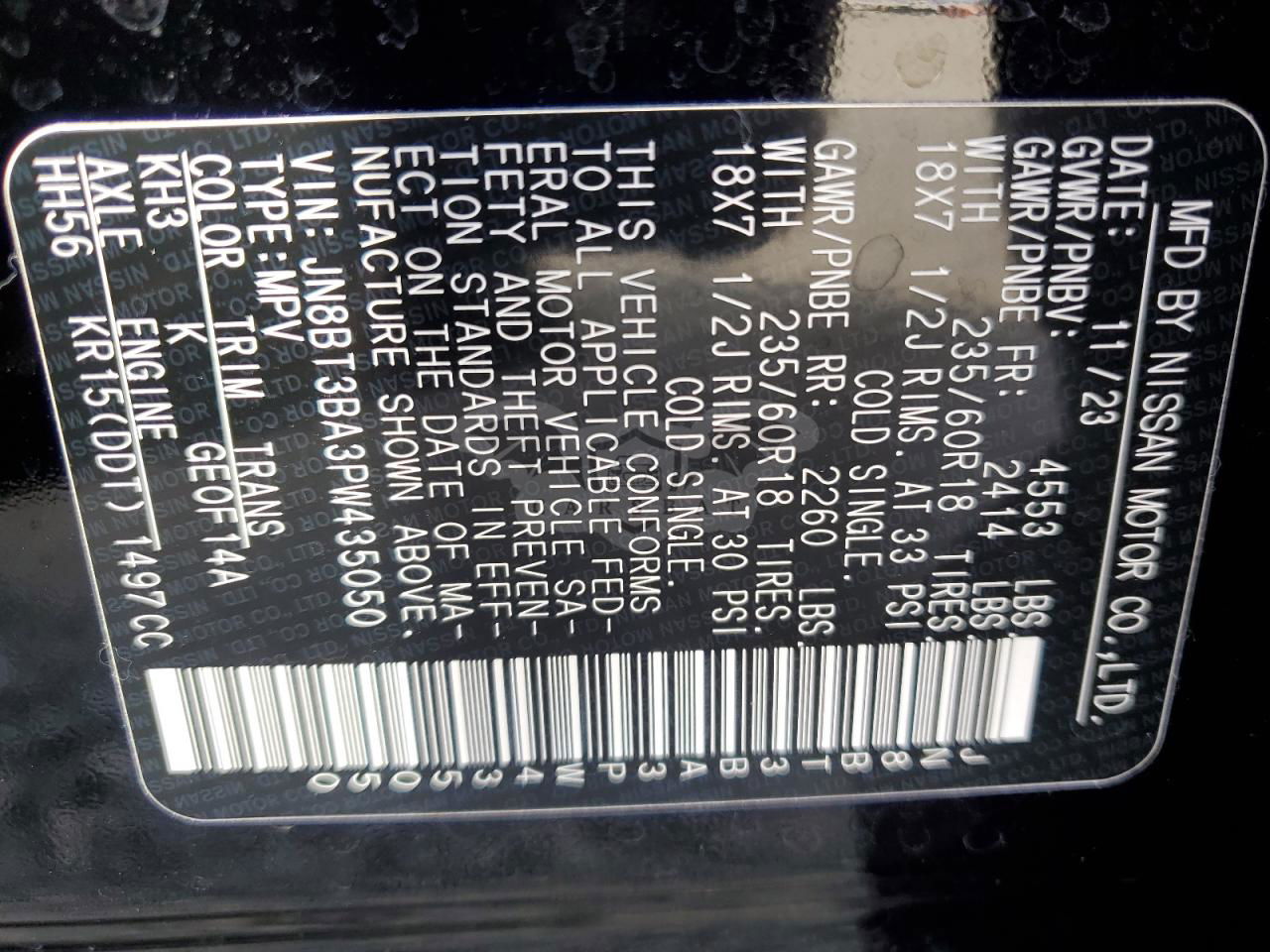 • VIN: JN8BT3BA3PW435050