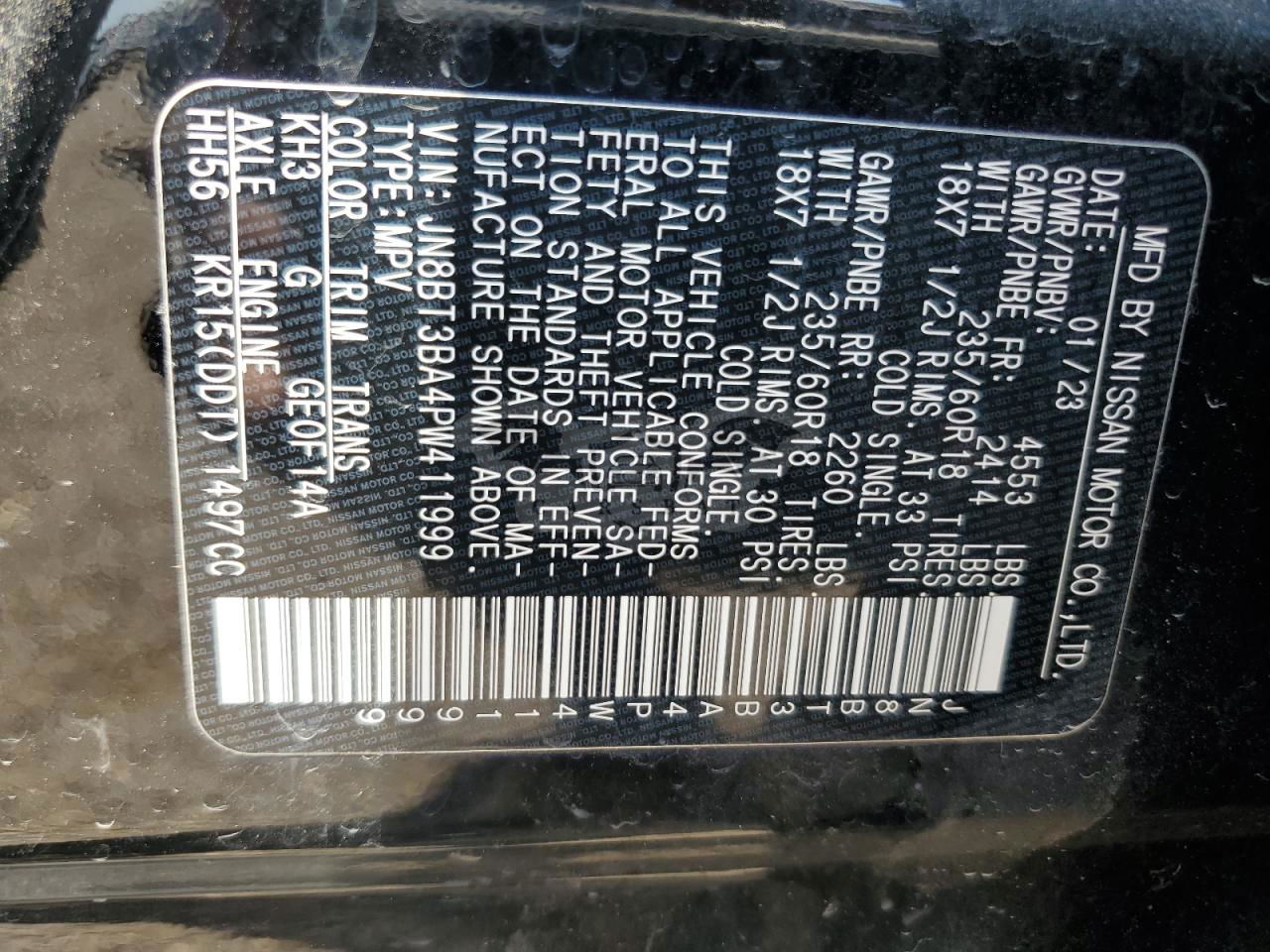 • VIN: JN8BT3BA4PW411999