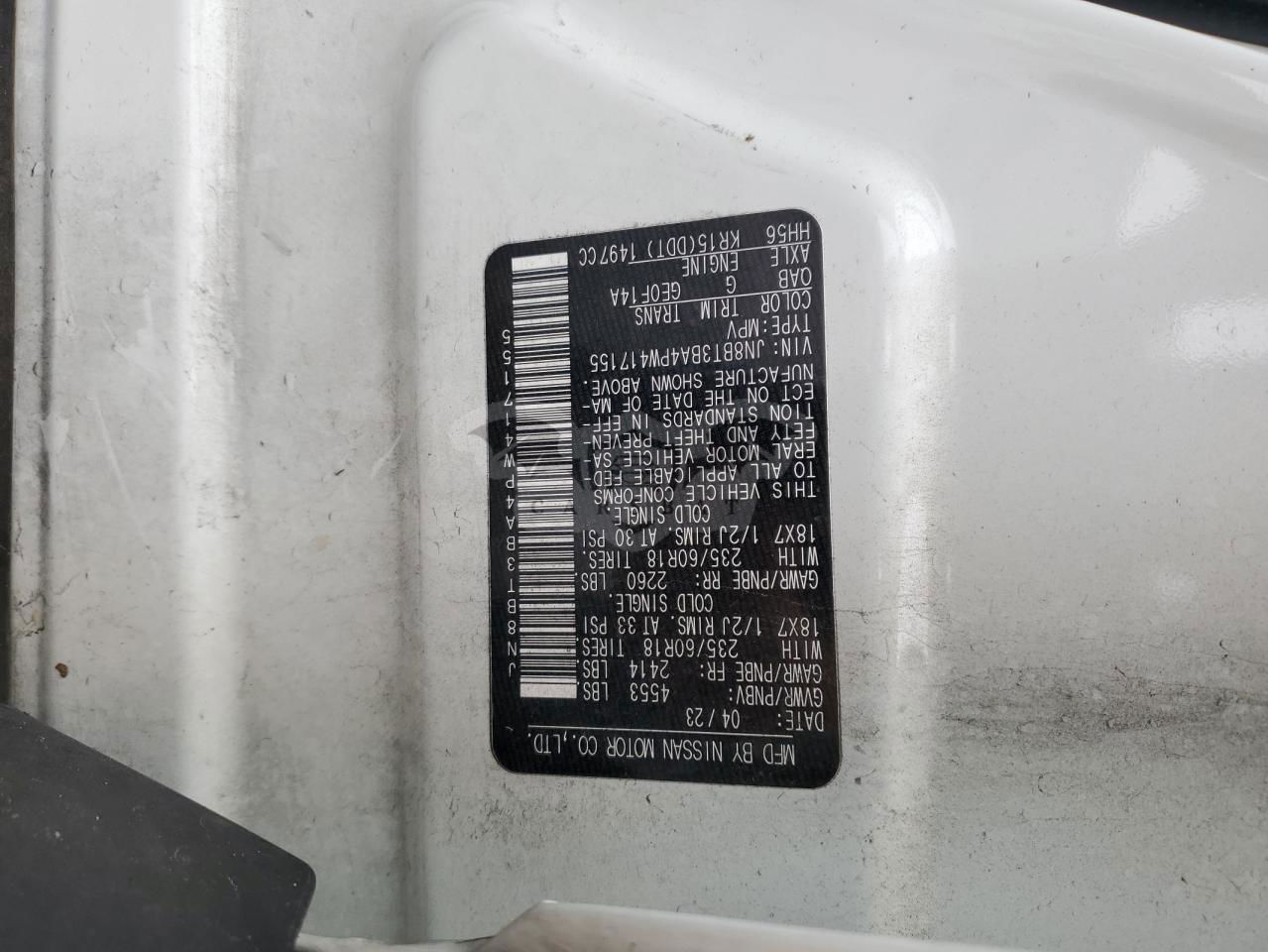• VIN: JN8BT3BA4PW417155