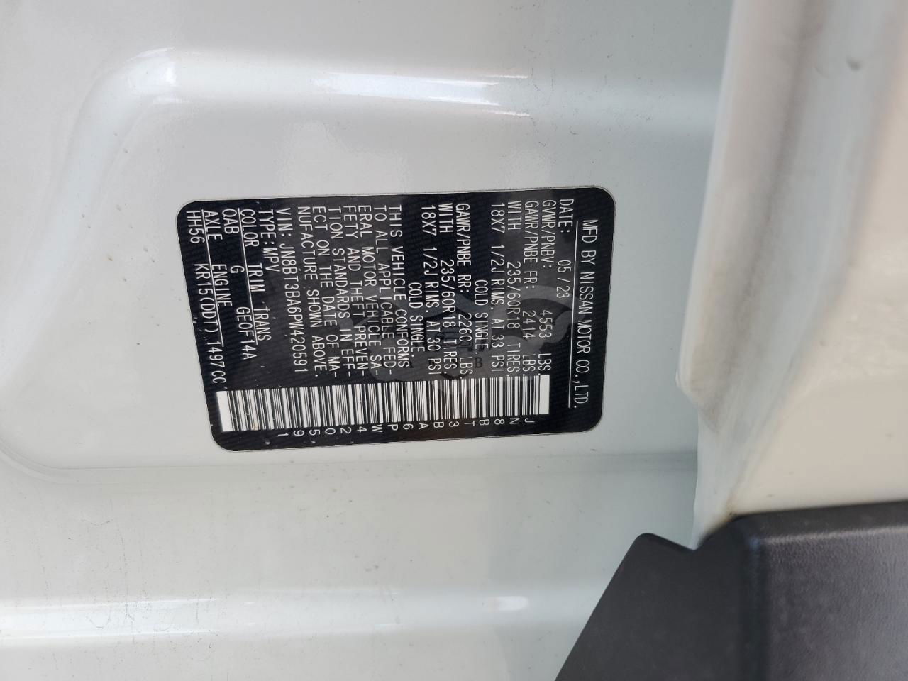 • VIN: JN8BT3BA6PW420591