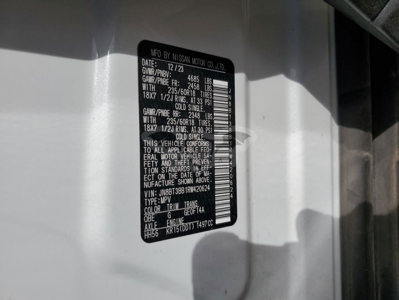 • VIN: JN8BT3BB1RW420624