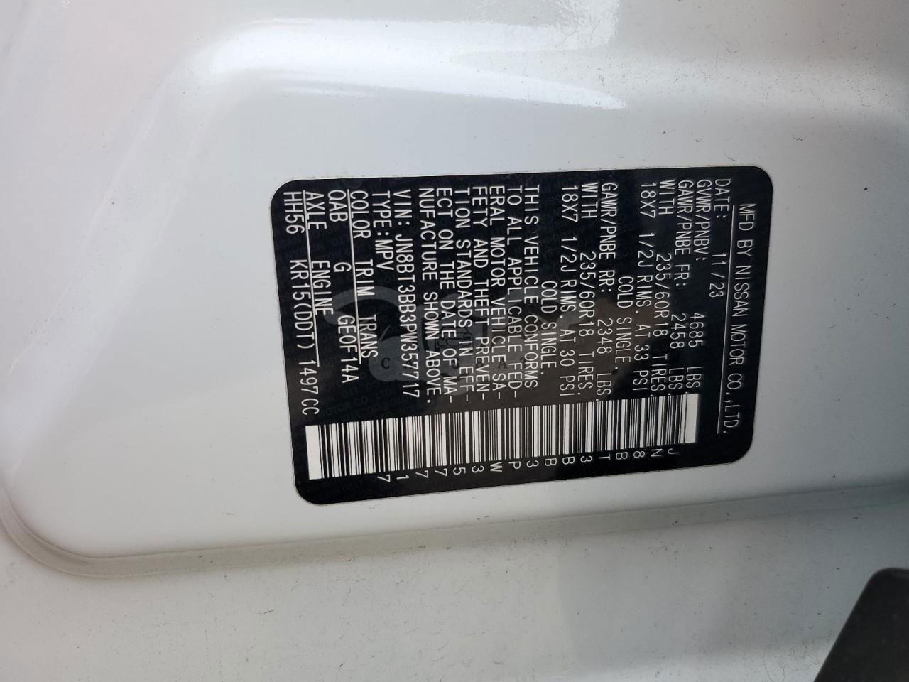 • VIN: JN8BT3BB3PW357717