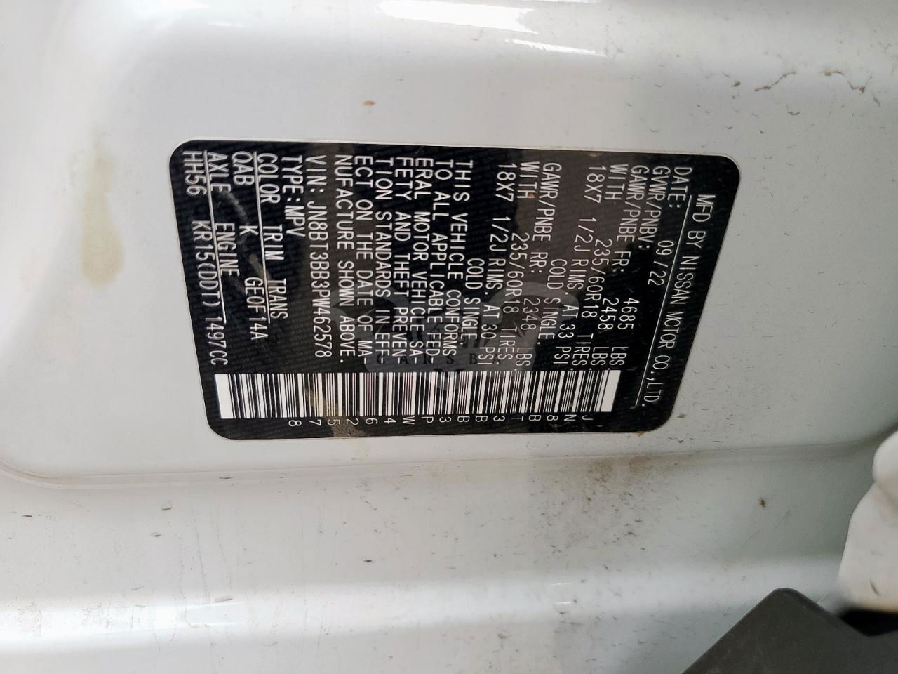 • VIN: JN8BT3BB3PW462578