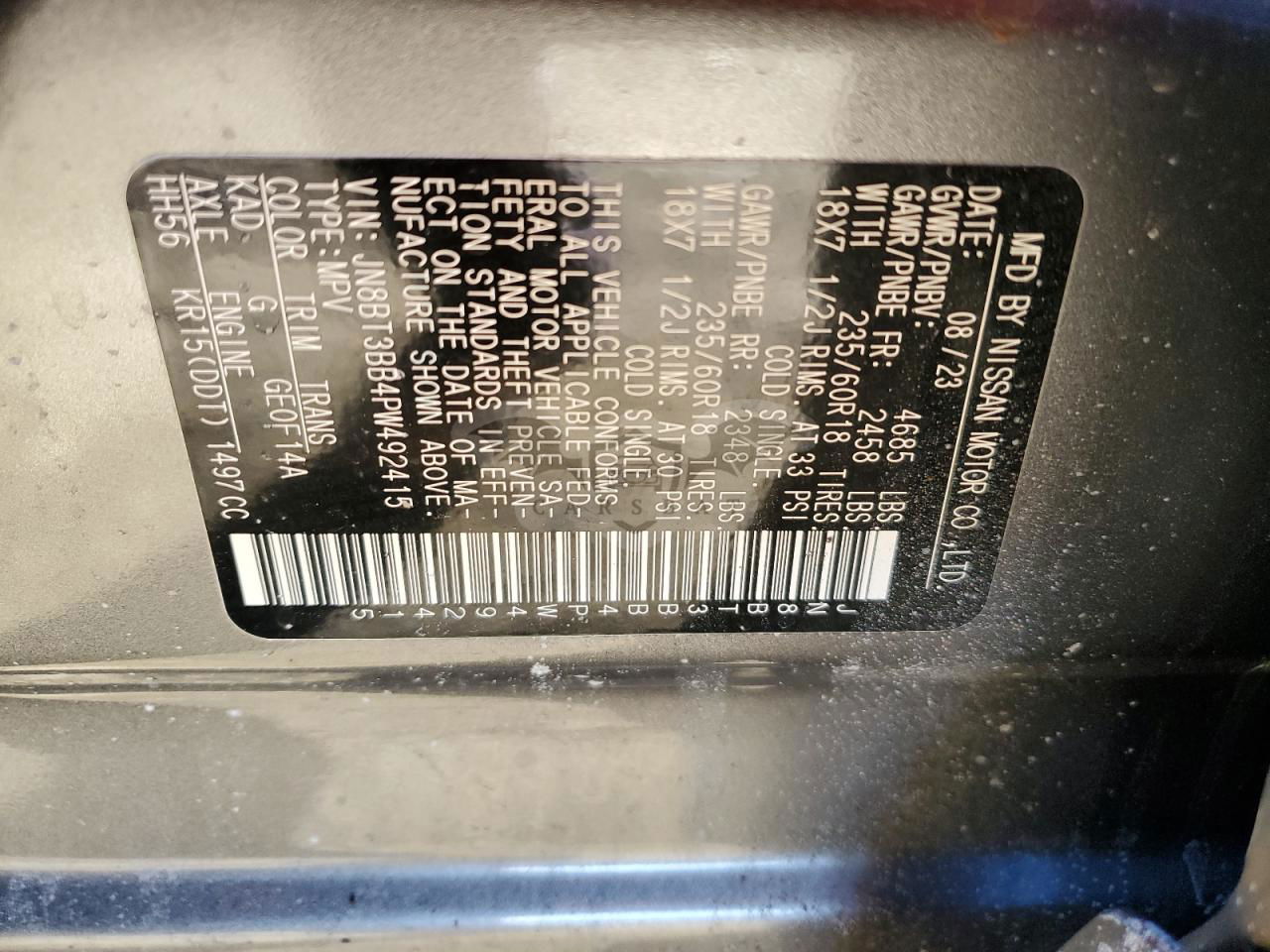 • VIN: JN8BT3BB4PW492415