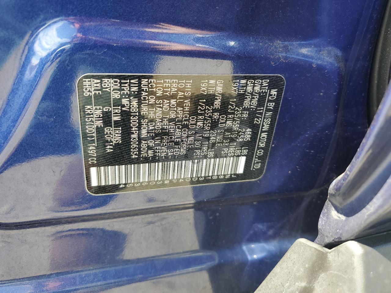• VIN: JN8BT3DD4PW306354