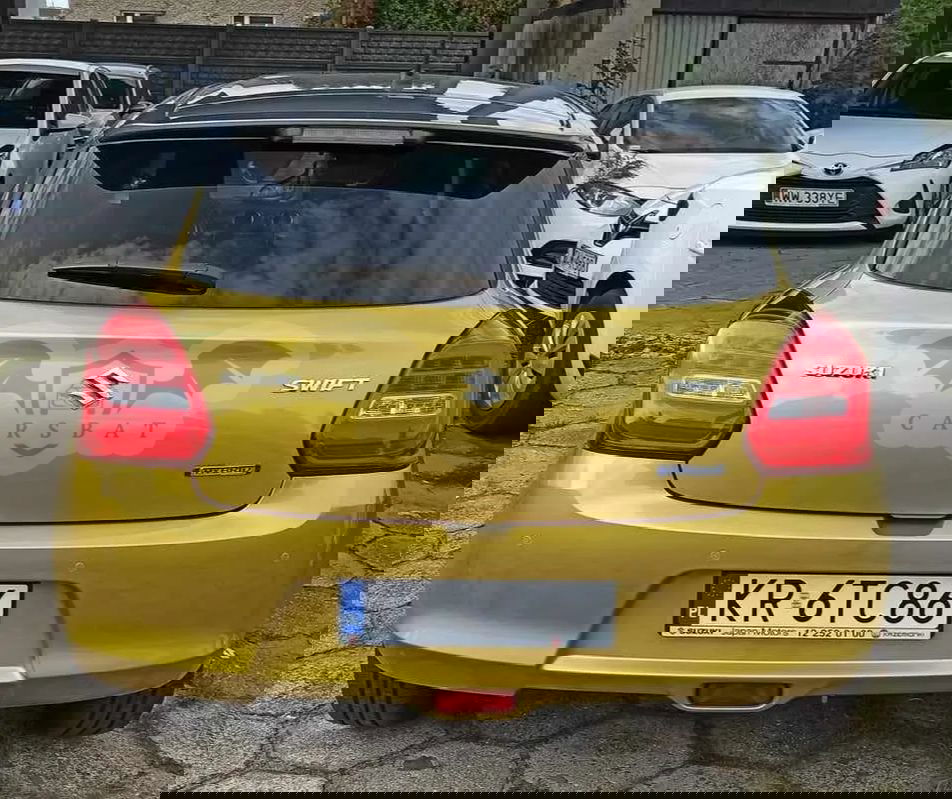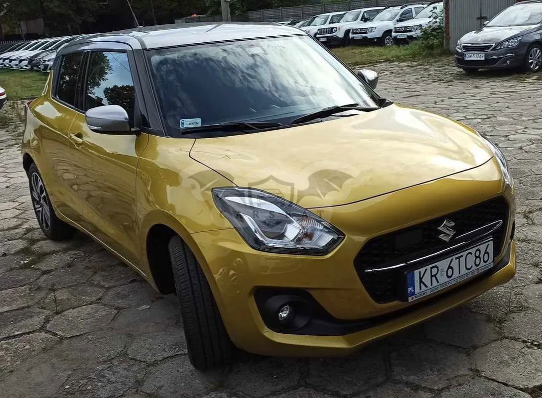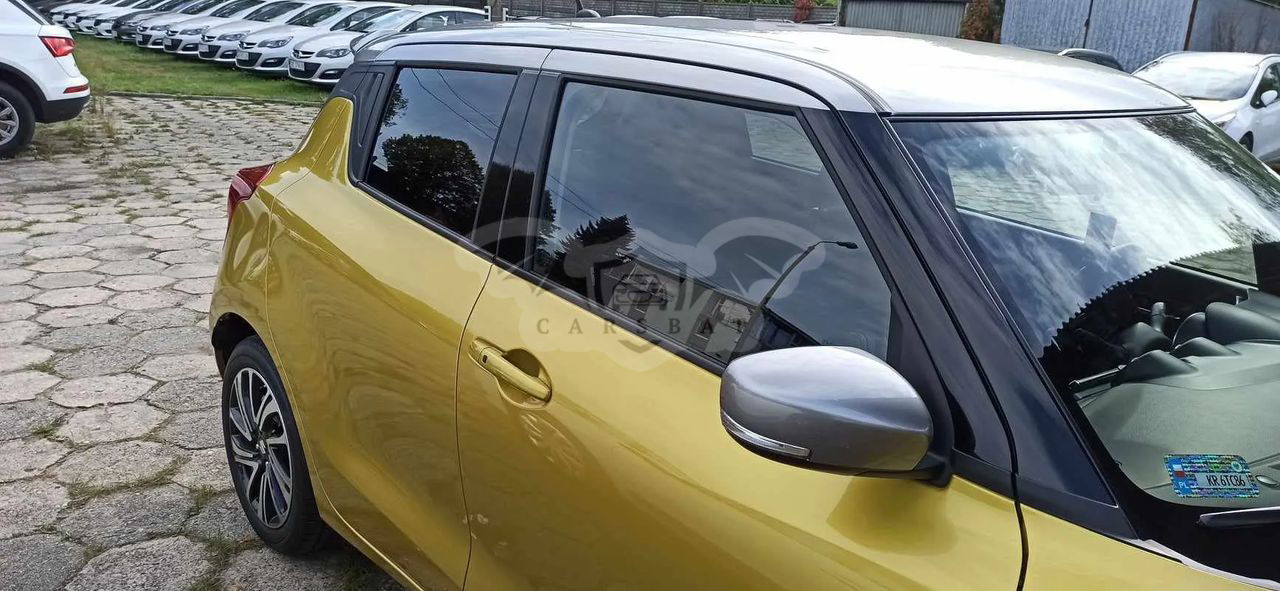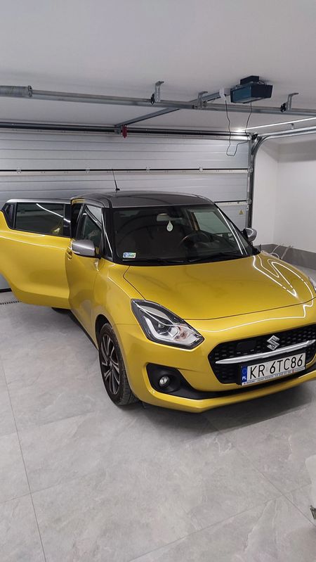 Sprzedam Suzuki Swift 2020 rok, najbogatsza wersja Elegance, dodatkowo w podwójnym kolorze i ze spojlerem. Dodaję opony zimowe. Pierwszy właściciel, samochód zakupiony w Salonie Suzuki w Krakowie, garażowany. Serwisowany w Autoryzowanym Salonie Suzuki, bezwypadkowy. Oryginalny kolor: Rush Yellow Metallic & Premium Silver Metallic. Benzyna, manualna skrzynia biegów. Niskie spalanie ok. 4,3 litra w trasie ok. 5 l na mieście. Silnik 1,2 Dualjet Mild Hybrid. Napęd wspomagany miękką hybrydą. Moc: 83 KM. Asystent pasa ruchu, tempomat aktywny, nawigacja, z przodu podgrzewane siedzenia a z tyłu nawiew na nogi pasażera, czujniki parkowania- tylne, system kluczyka elektronicznego, połączenie ze smartfonem, kolorowy wyświetlacz wielofunkcyjny, interaktywny system multimedialny z ekranem dotykowym, klimatyzacja automatyczna, elektrycznie regulowane szyby i lusterka, 2 dodatkowe głośniki wysokotonowe, regulacja pozioma kolumny kierownicy, kamera cofania, felgi aluminiowe 16" polerowane, tylne hamulce tarczowe, elektrycznie składane lusterka zewnętrzne, kierunkowskazy w obudowach lusterek zewnętrznych, regulacja wysokości fotela kierowcy, filtr przeciwpyłkowy, centralny zamek ze zdalnym sterowaniem, system podpowiedzi zmiany biegów GSI, półka bagażnika, lusterko wsteczne z regulacją dzień i noc, oświetlenie kabiny, dzielone i składane oparcie tylnej kanapy, funkcja świateł Guide me light, monochromatyczny wyświetlacz funkcyjny LCD, kierownica wykończona skórą i z przyciskami sterowania radiem, komunikacja bezprzewodowa Bluetooth z zestawem głośnomówiącym i przyciskami sterowania w kole kierownicy, radioodtwarzacz CD z czytnikiem MP3 i 4 głośnikami, gniazdo USB, gniazdo 12V, szyby atermiczne, tylne światło przeciwmgłowe, wycieczka tylnej szyby ze spryskiwaczem, klamki i obudowy lusterek zewnętrznych w kolorze nadwozia, reflektory Led HI/Low, automatyczna regulacja wysokości świecenia reflektorów, przyciemniane szyby w tylnej części nadwozia. Ostatni przegląd, badanie techniczne, wymiana oleju, wymiana filtrów 26.09.2023 r. Przebieg 48300 km. Przedłużona gwarancja do 27.09.2025 r. Można zobaczyć pod Krakowem obok Wieliczki. Cena 67 000 zł.