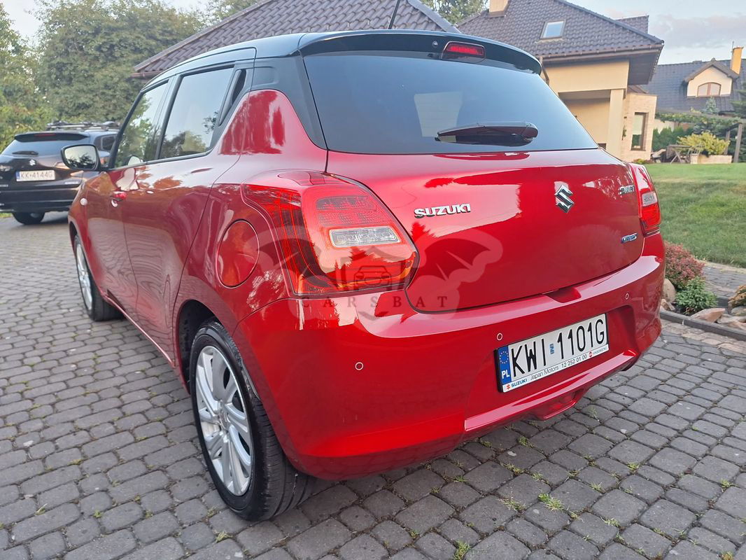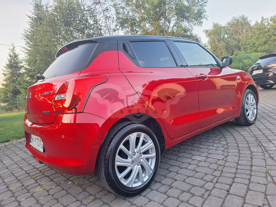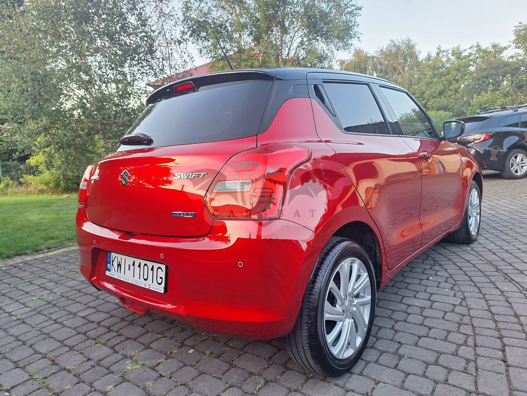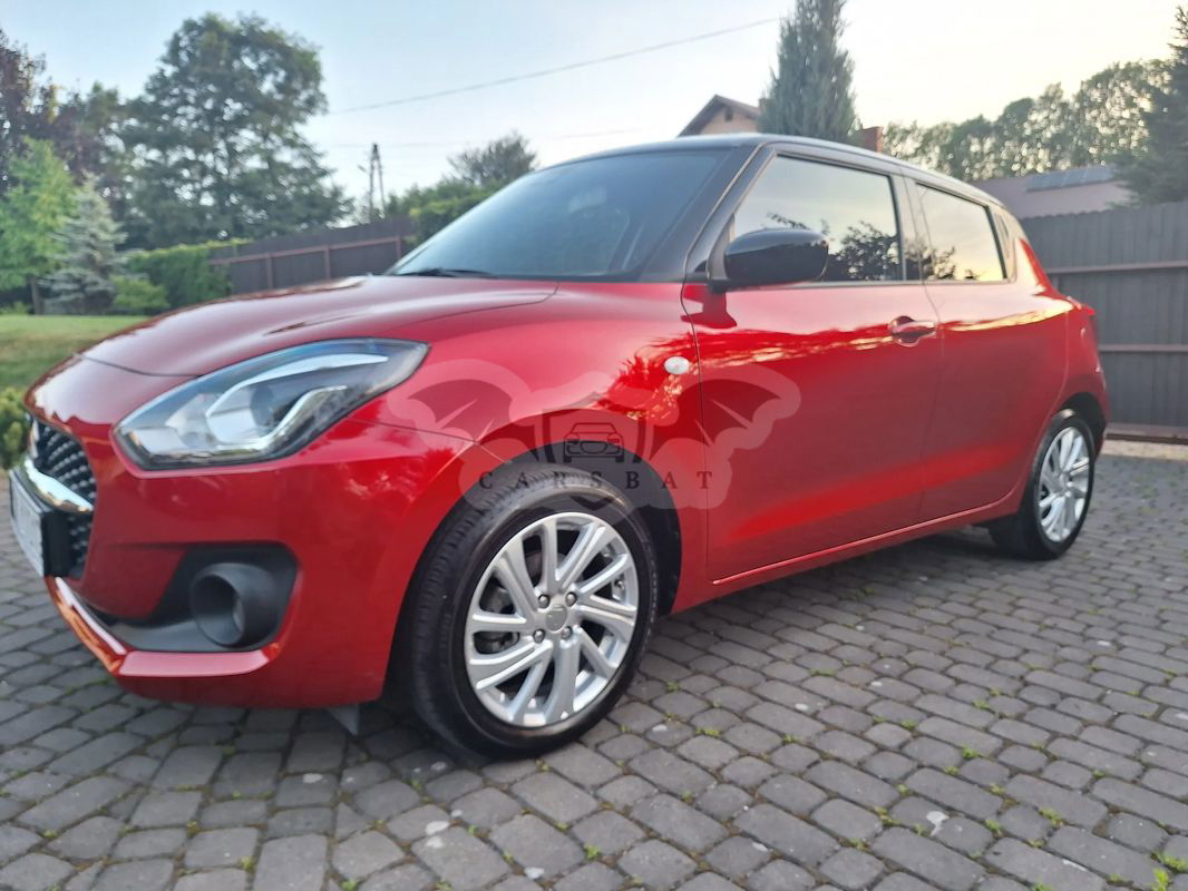 Sprzedam prywatny samochód Suzuki Swift kupiony w salonie w marcu 2023, jestem pierwszym i jedynym właścicielem. Samochód w bogatszej wersji wyposażenia Premium Plus w dwukolorowym nadwoziu - dach czarny metalik, nadwozie czerwony perłowy. Napęd to miękka hybryda czyli cały czas jeździ normalnie na silniku benzynowym, a silnik elektryczny tylko wspomaga przy dużym obciążeniu. Auto bezwypadkowe, serwisowane, zadbane, garażowane z niskim przebiegiem. Na gwarancji fabrycznej do 03.2026