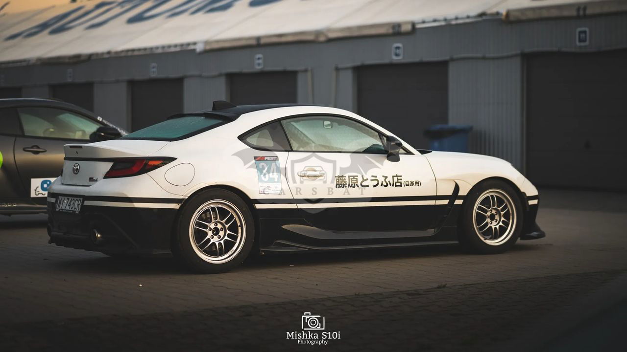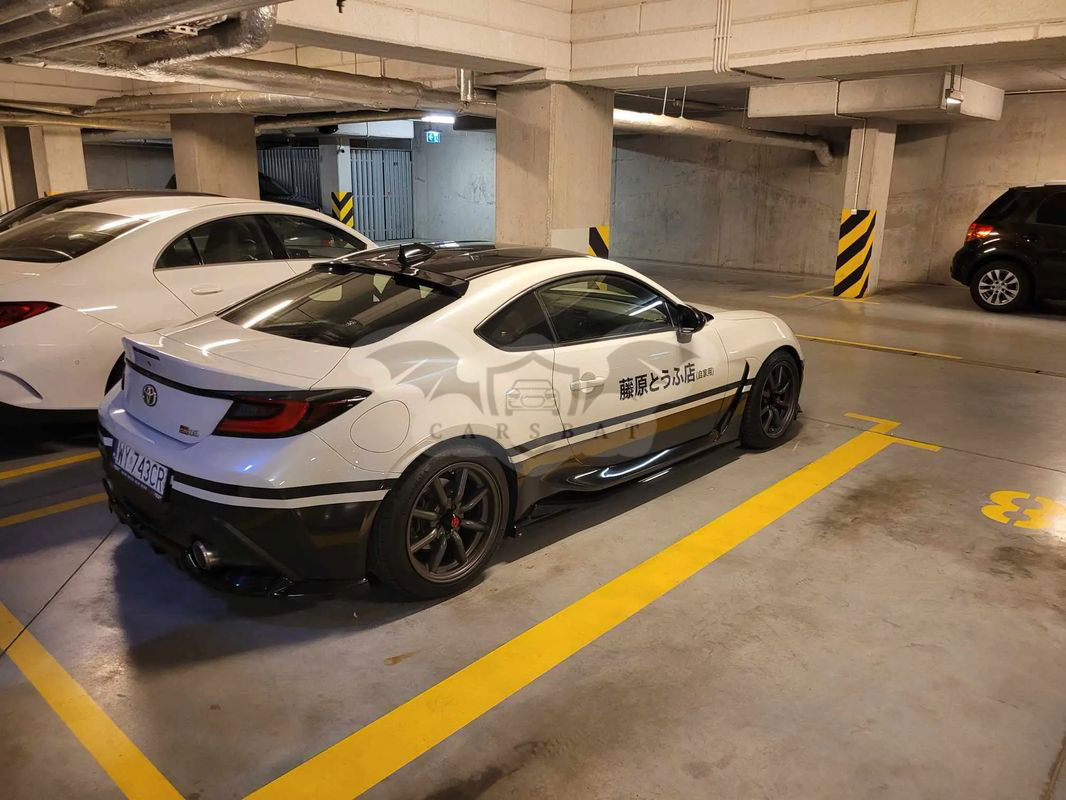 Na sprzedaż Toyota GR86, wersja Executive, rocznik 2022 (pierwsza rejestracja 12.12.2022), aktualny przebieg około 21tyś. km (może trochę wzrosnąć). Auto kupione w salonie Toyota Radość w Warszawie, jedna z 50 sztuk sprzedanych w Polsce, jestem pierwszym właścicielem auta. Stan auta idealny, zarówno w środku jak i na zewnątrz, dopiero co zrobiony był przegląd w ASO (22.11.2024, wymieniony olej) i cały czas obowiązuje gwarancja producenta. OC też dopiero co przedłużone, ważne do listopada 2025. Całe auto zabezpieczone jest folią PPF (gwarancja jeszcze 3 lata), dodatkowo od dołu oklejone czarną folią wraz z napisem na obu drzwiach nawiązującym do kultowej AE86 z mangi i anime Initial D. Dach również oklejony czarną folią. Z innych modyfikacji: - pakiet dokładek maxton design - przednia dokładka (jeden fragment lekko ukruszony po spotkaniu z wysokim progiem zwalniającym, niemal niewidoczne; jest również lekko zarysowana), dokładki progów, dokładka tylnego zderzaka, spoiler na tylnej szybie. - na aucie założone jest oryginalne zawieszenie gwintowane HKS Hypermax R (ściągnięte z Japonii od producenta). Przebieg około 5-6 tyś km. - w tym momencie (zima) auto stoi na felgach Enkei RPF1 (17x8J +45) i oponach Continental WinterContact (mające jeden sezon za sobą, znikomy przebieg zimą). - latem auto jeździ na oryginalnych felgach RS Watanabe R-type (17x8.5J +30), ściągniętych w tym roku z Japonii, i oponach Continental PremiumContact 7 (dopiero co kupione, zrobione może 2tyś. km). - założona chłodnica oleju Jackson Racing wraz z osłoną. - przewody hamulcowe w oplocie, świeżo zalane płynem motul rbf660, dodatkowo dodaje do auta tarcze na wszystkie koła (przód DBA 4650S wraz z niemal nowymi klockami ebc bluestuff, tył zamiennik OEM brembo wraz z klockami ferodo ds2500 jak dobrze pamiętam). Oprócz wyżej wymienionych, do auta posiadam również fabryczne felgi 18 cali na oponach Pirelli ps4. Z Japonii w tym momencie płynie też paczka z końcowym układem wydechowym HKS Legamax Premium. Posiadam również opony Nankang AR-1 po jednym treningu, które mogę dorzucić do auta. W razie pytań zapraszam do kontaktu tel/mail czy przez wiadomości, auto można obejrzeć w Warszawie na woli po wcześniejszym umówieniu. Auto sprzedaję na umowę kupna-sprzedaży, bez FVAT!