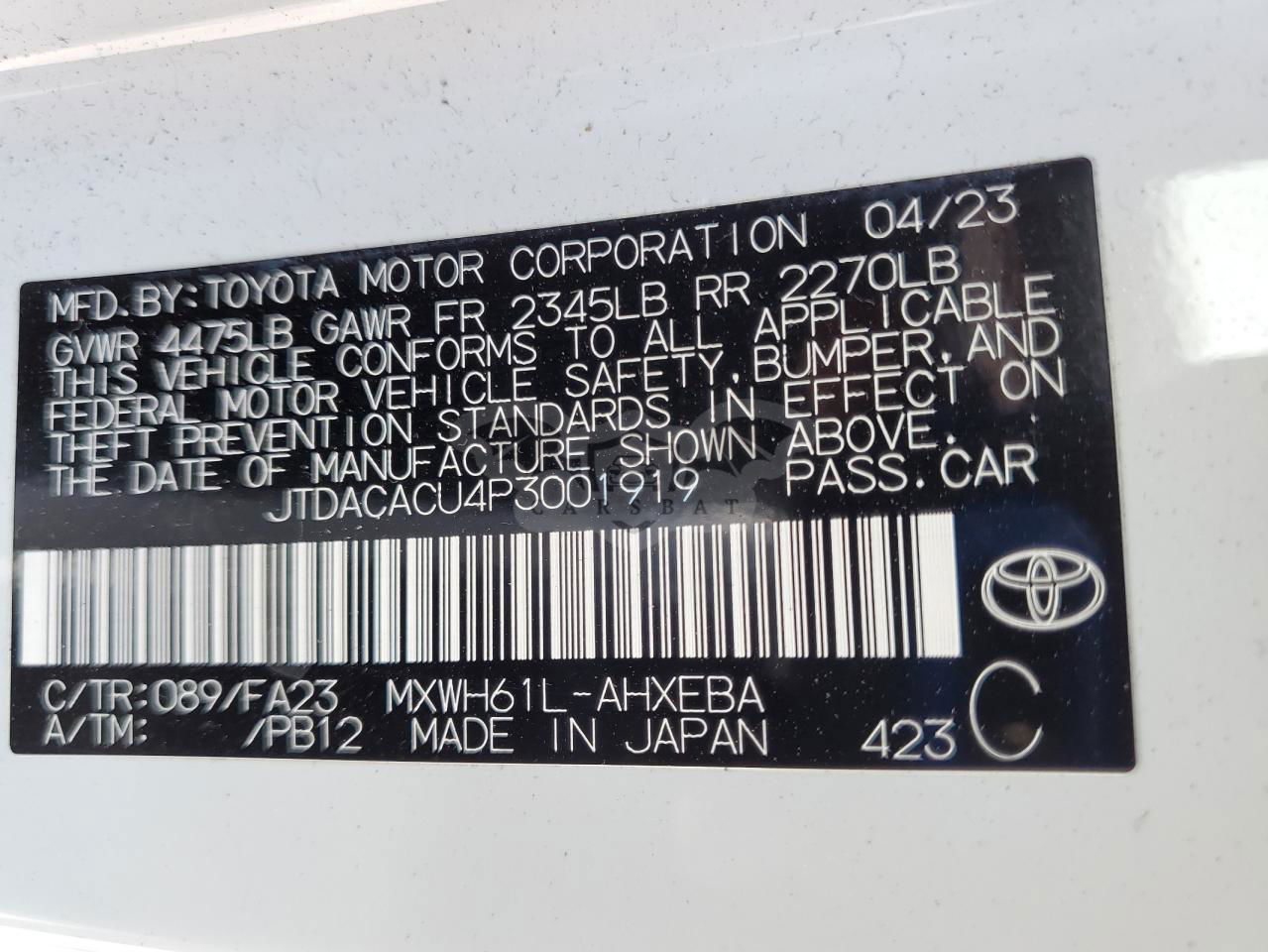 • VIN: JTDACACU4P3001919
