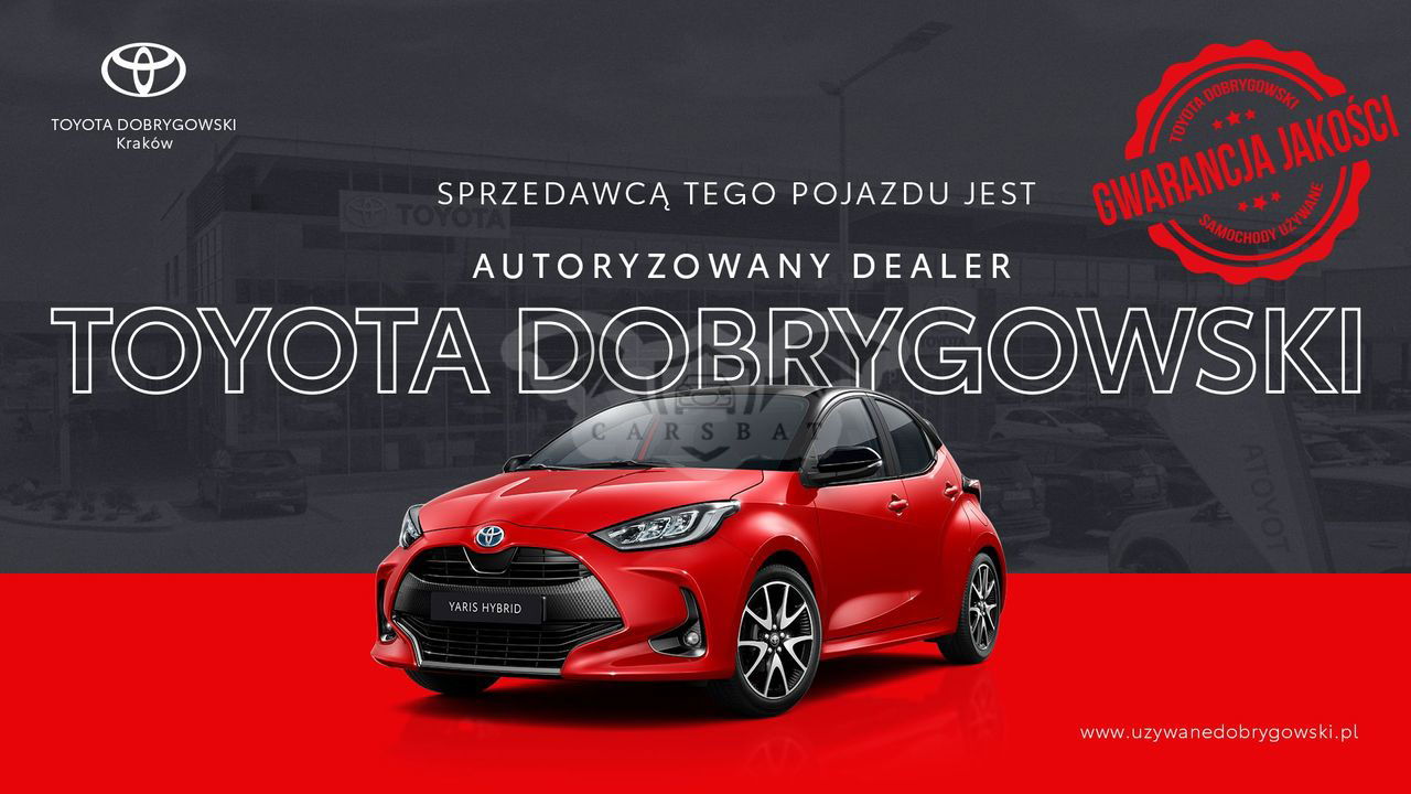 TOYOTA DOBRYGOWSKI to Autoryzowany Dealer marki Toyota w Modlnicy obok Krakowa, firma działająca na rynku motoryzacyjnym od ponad 25 lat. Wielokrotny Dealer Roku. Oferujemy sprawdzone samochody używane różnych marek. Oferujemy Państwu: + Szczegółowo sprawdzone samochody z możliwością wglądu do protokołu technicznego. + Oględziny pojazdu w komfortowych warunkach, nawet pomimo późnej pory lub złych warunków atmosferycznych. + Kompleksowa obsługa finansowa: ubezpieczenia, kredyty, leasingi itp. + Możliwość pozostawienia w rozliczeniu samochodu dowolnej marki bez względu na wiek, przebieg i stan techniczny. + Wykwalifikowani i sympatyczni doradcy. + Możliwość zwrotu samochodu do 30 dni w przypadku braku zadowolenia z zakupu. Zapraszamy do zapoznania się z ofertą pojazdu: Toyota Aygo Style Rok produkcji 2024 Kraj pochodzenia Polska Data pierwszej rejestracji 2024-01-31 Przebieg 1 132 km Typ silnika BENZYNA Pojemność 998 ccm Skrzynia biegów 1 stopniowa automatyczna Typ nadwozia Auta miejskie Moc 72 KM Napęd Na przednie koła Gwarancja fabryczna do 2027-01-31 Liczba drzwi 5 Liczba miejsc 4 Kolor lakieru Czarny Metalik Tapicerka Materiałowa, Kolor Czarny Dodatkowe parametry - Faktura VAT - Możliwość finansowania - Pierwszy właściciel Wyposażenie Bezpieczeństwo - ABS - ASR (kontrola trakcji) - Asystent pasa ruchu - BA-system wspomagania hamowania - Czujnik zmierzchu - DAC-system wspomagający zjazd ze wzniesienia - ESP (stabilizacja toru jazdy) - HAC-system wspomagający pokonywanie podjazdu - Isofix - Kurtyny powietrzne - Ogranicznik prędkości - Poduszka powietrzna chroniąca kolana - Poduszka powietrzna kierowcy - Poduszka powietrzna pasażera - Poduszki boczne przednie - Światła do jazdy dziennej - Światła LED - światła led do jazdy dziennej - Światła przeciwmgielne Komfort - Bluetooth - Centralny zamek - centralny zamek sterowany pilotem - Czujniki parkowania przednie - Czujniki parkowania tylne - Elektryczne szyby przednie - Gniazdo USB - Kamera cofania - Klimatyzacja automatyczna - Klimatyzacja dwustrefowa - Komputer pokładowy - MP3 - Nawigacja GPS - Podgrzewane przednie siedzenia - Przyciemniane szyby - radio - Radio CD/MP3 z ekranem dotykowym - radio z ekranem dotykowym - Sterowanie radiem z manetki pod kierownicą - Tempomat - Tempomat aktywny - tylne siedzenia składane - Wielofunkcyjna kierownica Inne - Alufelgi - bezwypadkowy - Elektrycznie ustawiane lusterka - gwarancja - Immobilizer - kupiony w salonie - leasing - możliwość finansowania - napęd przedni - pierwszy właściciel - serwisowany w ASO - Wspomaganie kierownicy - wystawiamy fakturę VAT - właściciel niepalący - zarejestrowany w Polsce Powyższe ogłoszenie ma charakter informacyjny i nie stanowi oferty handlowej w rozumieniu art.66 §1 kodeksu cywilnego oraz innych przepisów prawnych.