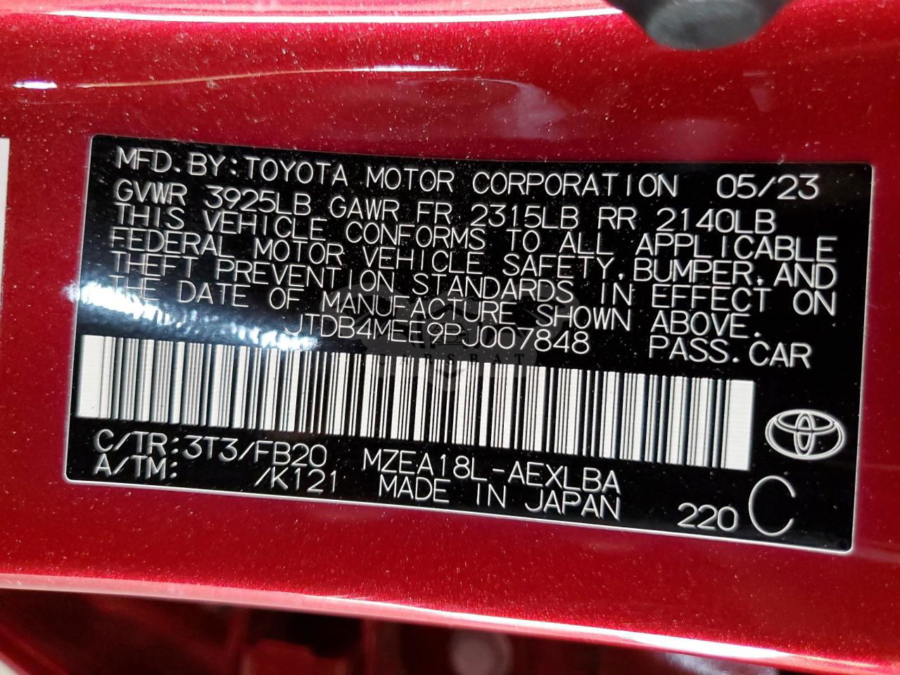 • VIN: JTDB4MEE9PJ007848