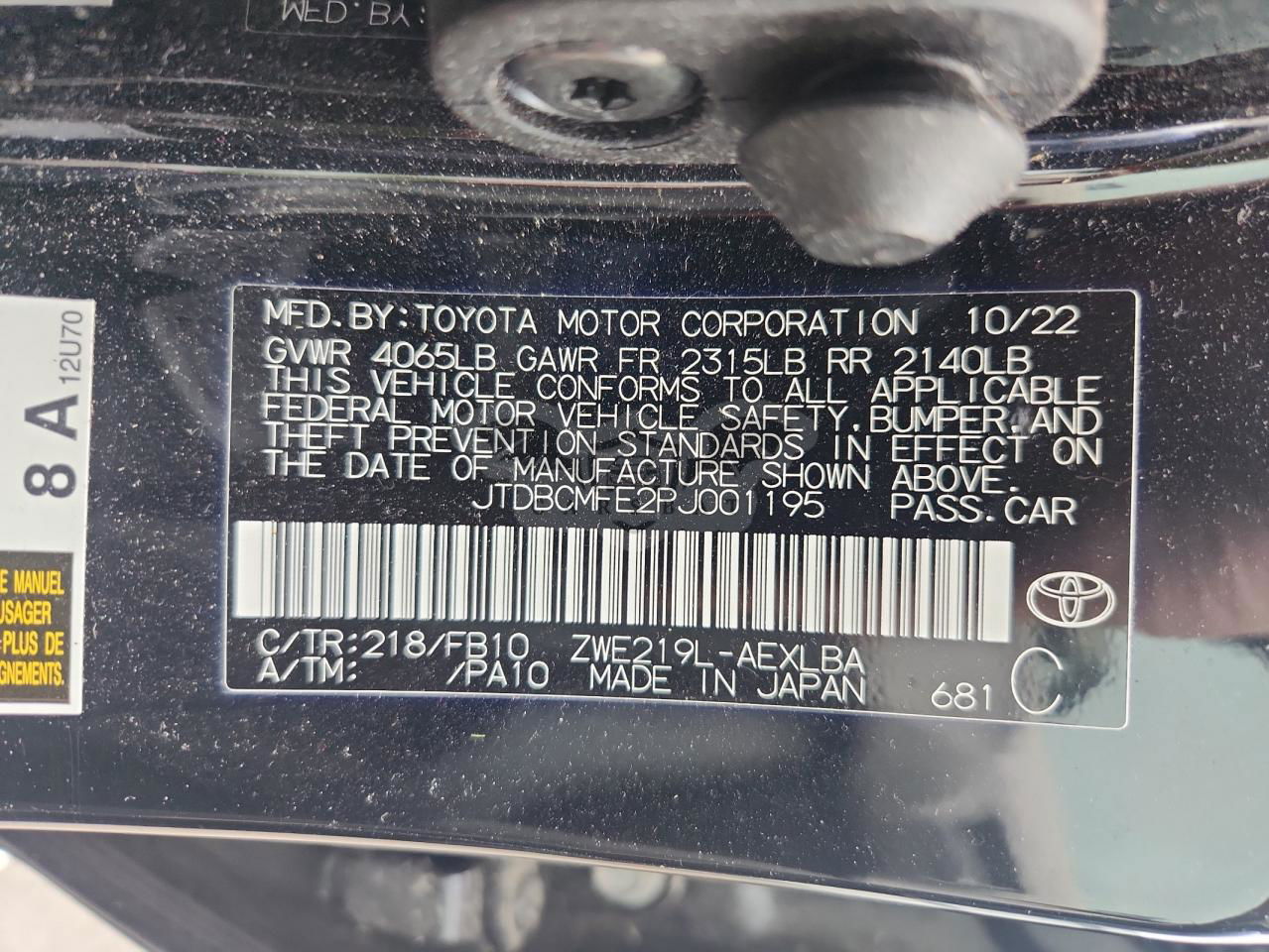 • VIN: JTDBCMFE2PJ001195