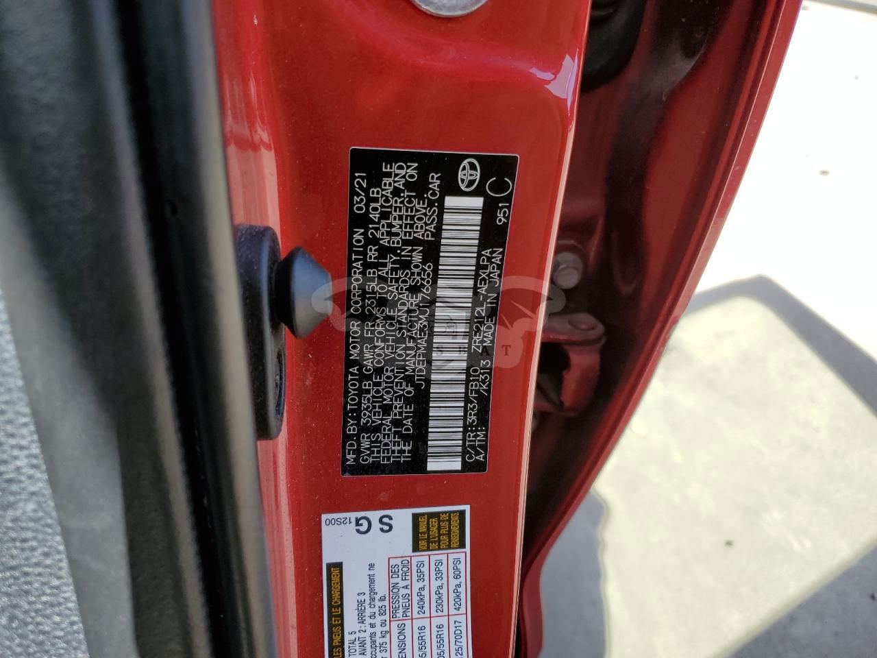 • VIN: JTDEPMAE3MJ176656