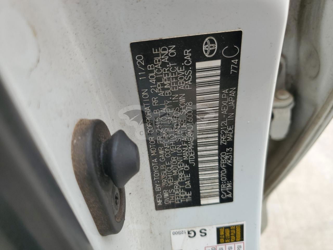 • VIN: JTDEPMAE8MJ160078