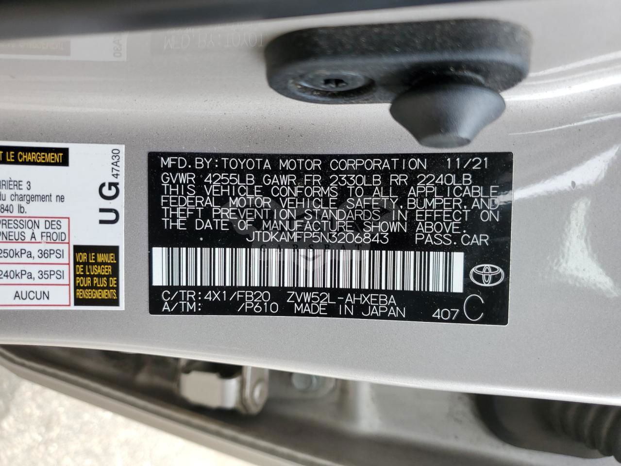 • VIN: JTDKAMFP5N3206843