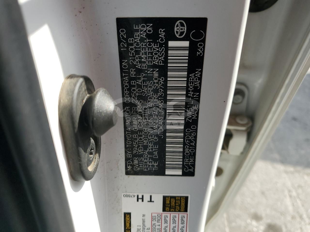 • VIN: JTDKAMFU9M3139796