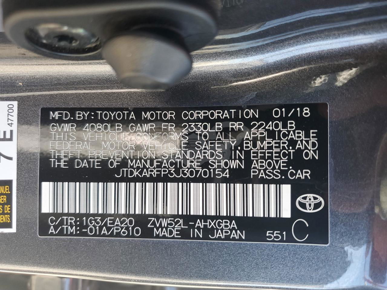 • VIN: JTDKARFP3J3070154