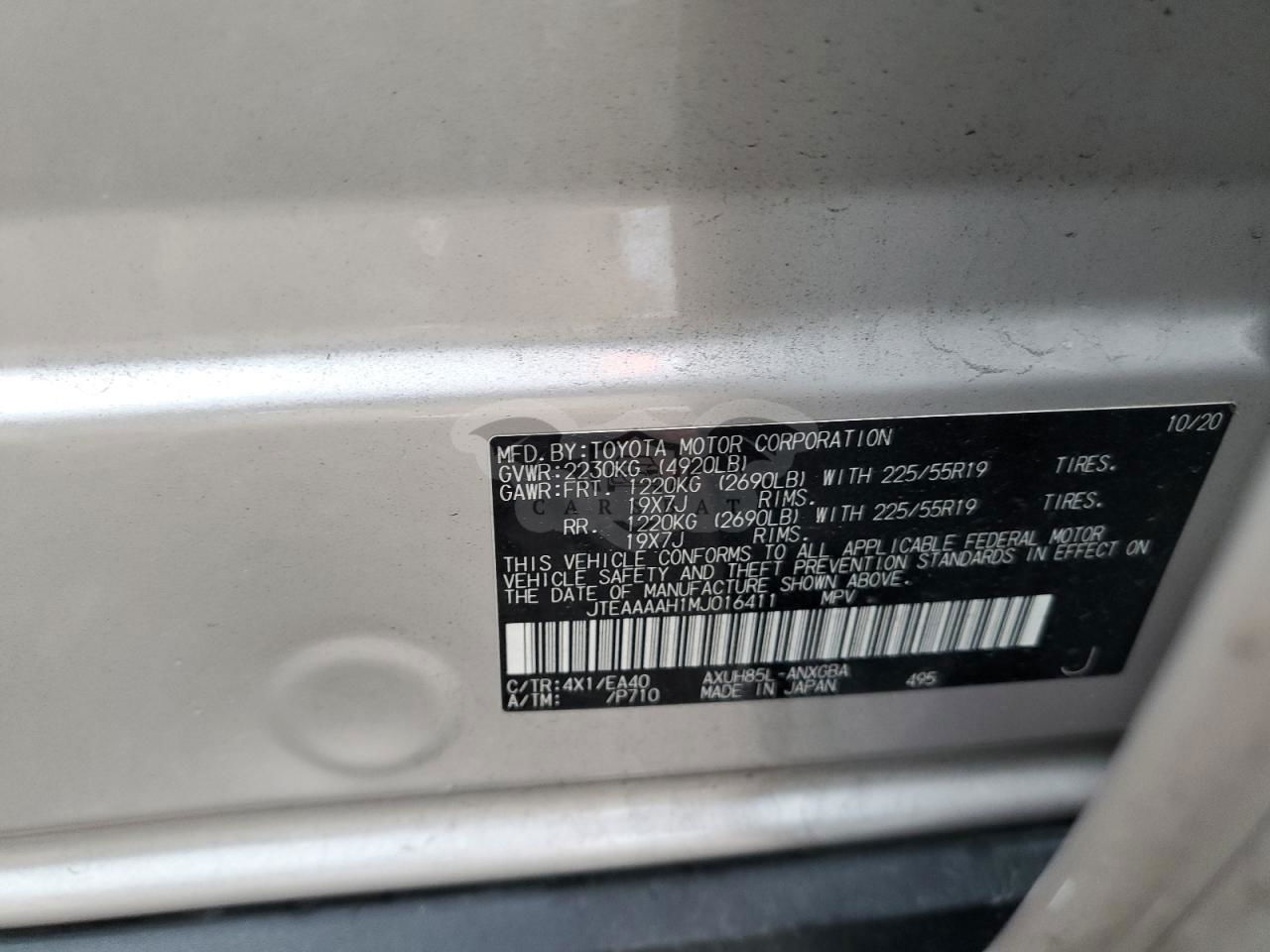 • VIN: JTEAAAAH1MJ016411