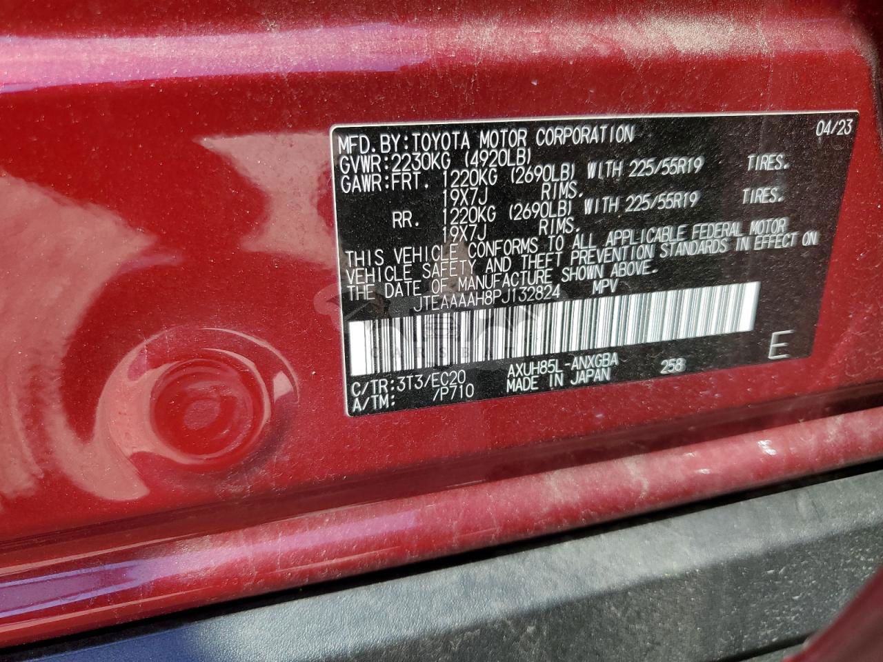 • VIN: JTEAAAAH8PJ132824