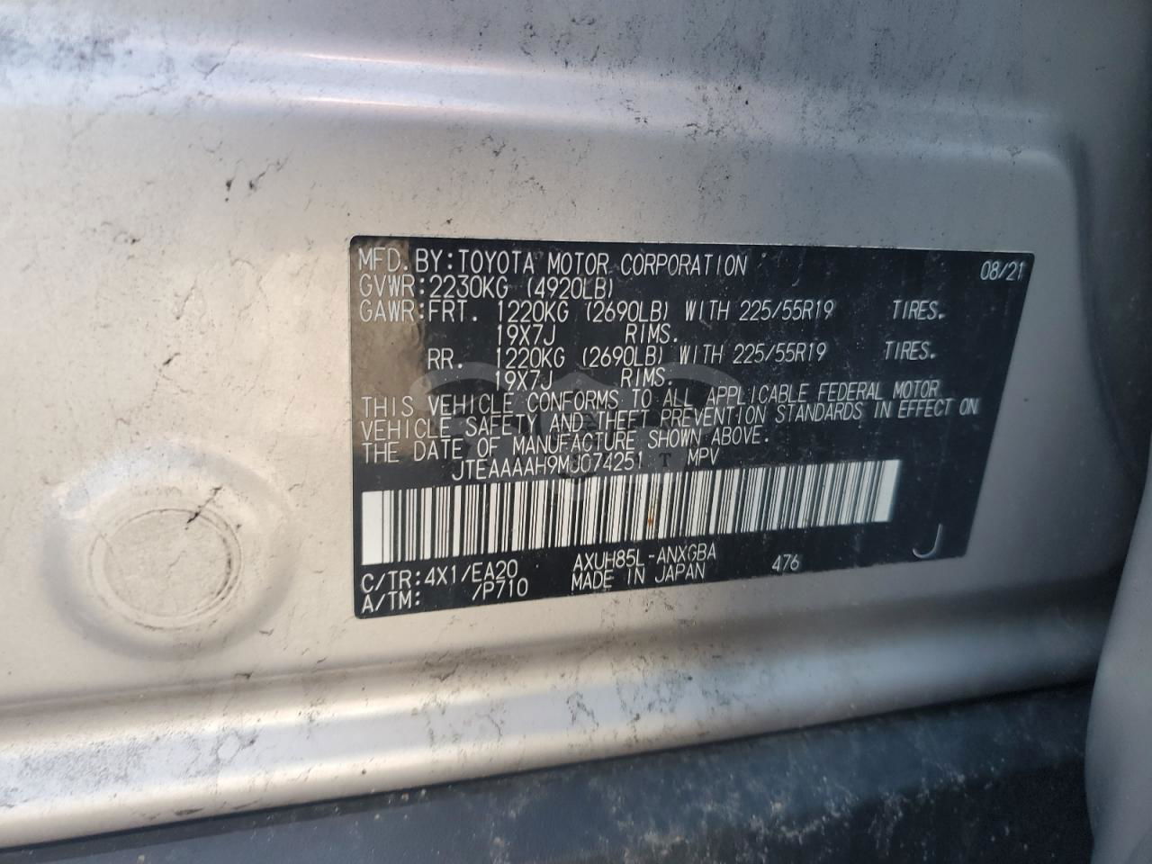 • VIN: JTEAAAAH9MJ074251