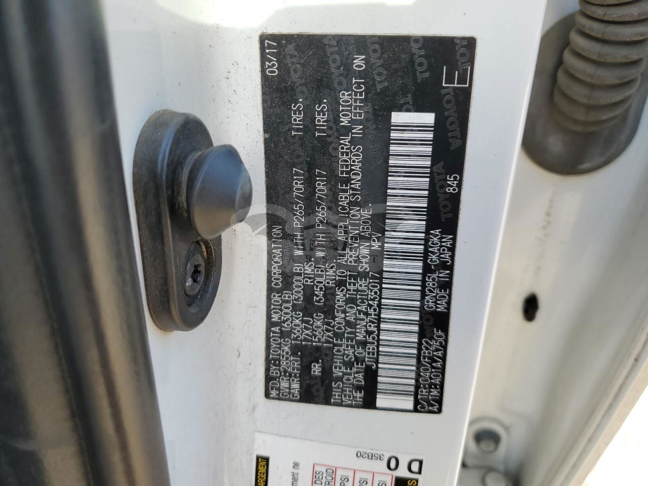 • VIN: JTEBU5JR7H5435017