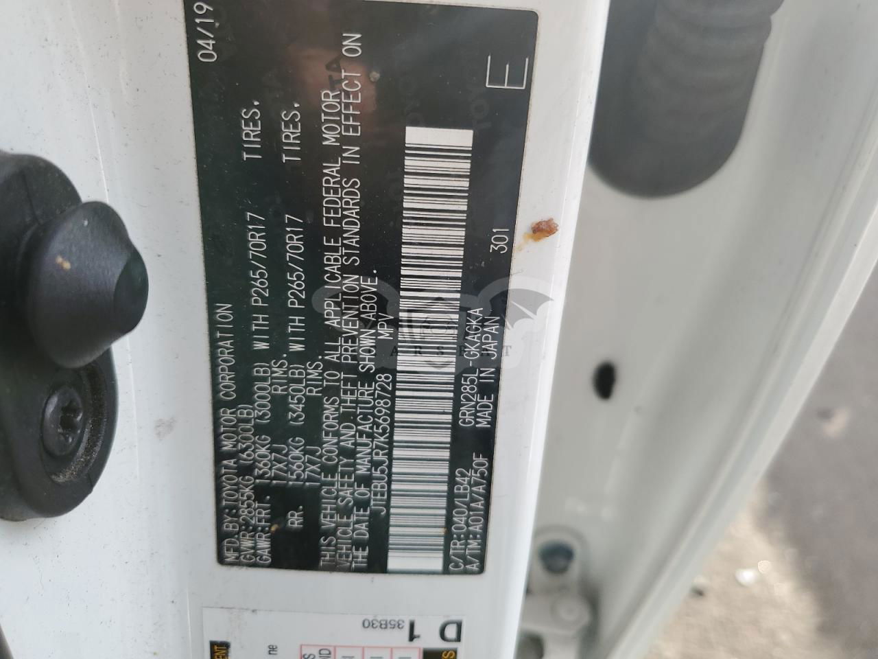 • VIN: JTEBU5JR7K5698728