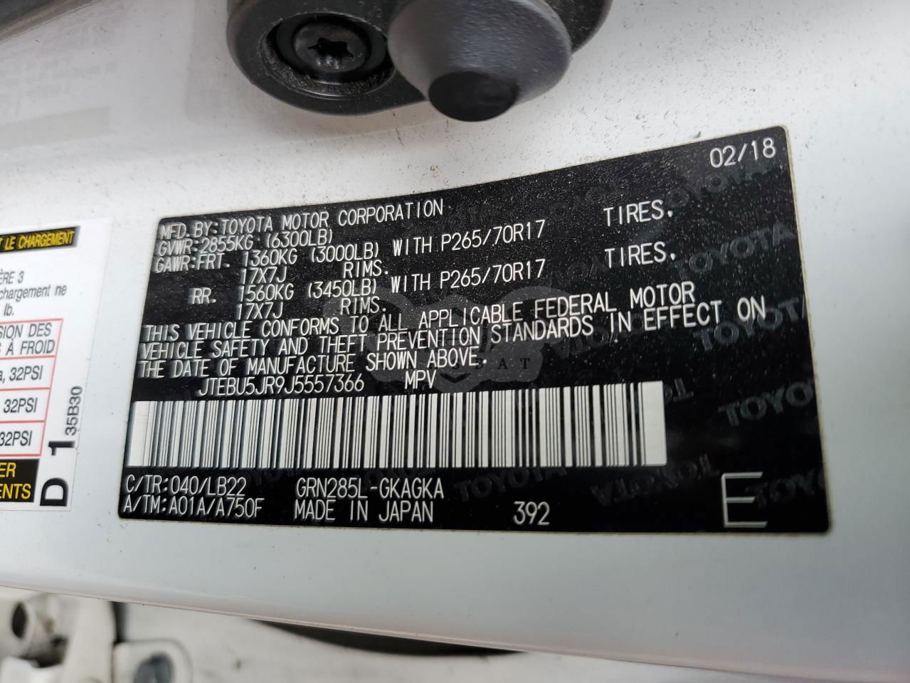 • VIN: JTEBU5JR9J5557366
