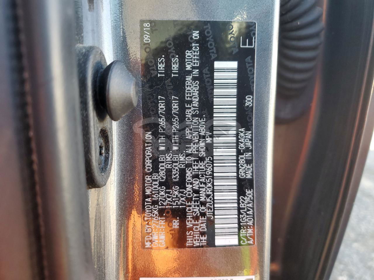 • VIN: JTEZU5JR0K5196075