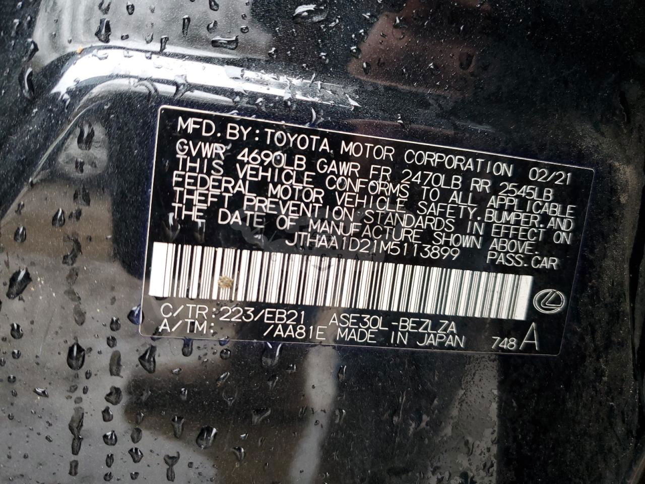 • VIN: JTHAA1D21M5113899
