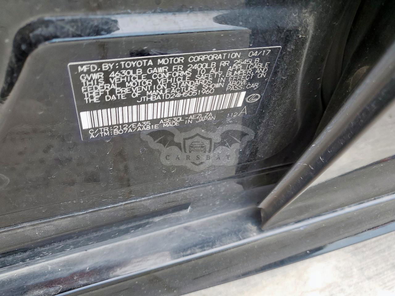 • VIN: JTHBA1D24H5051960
