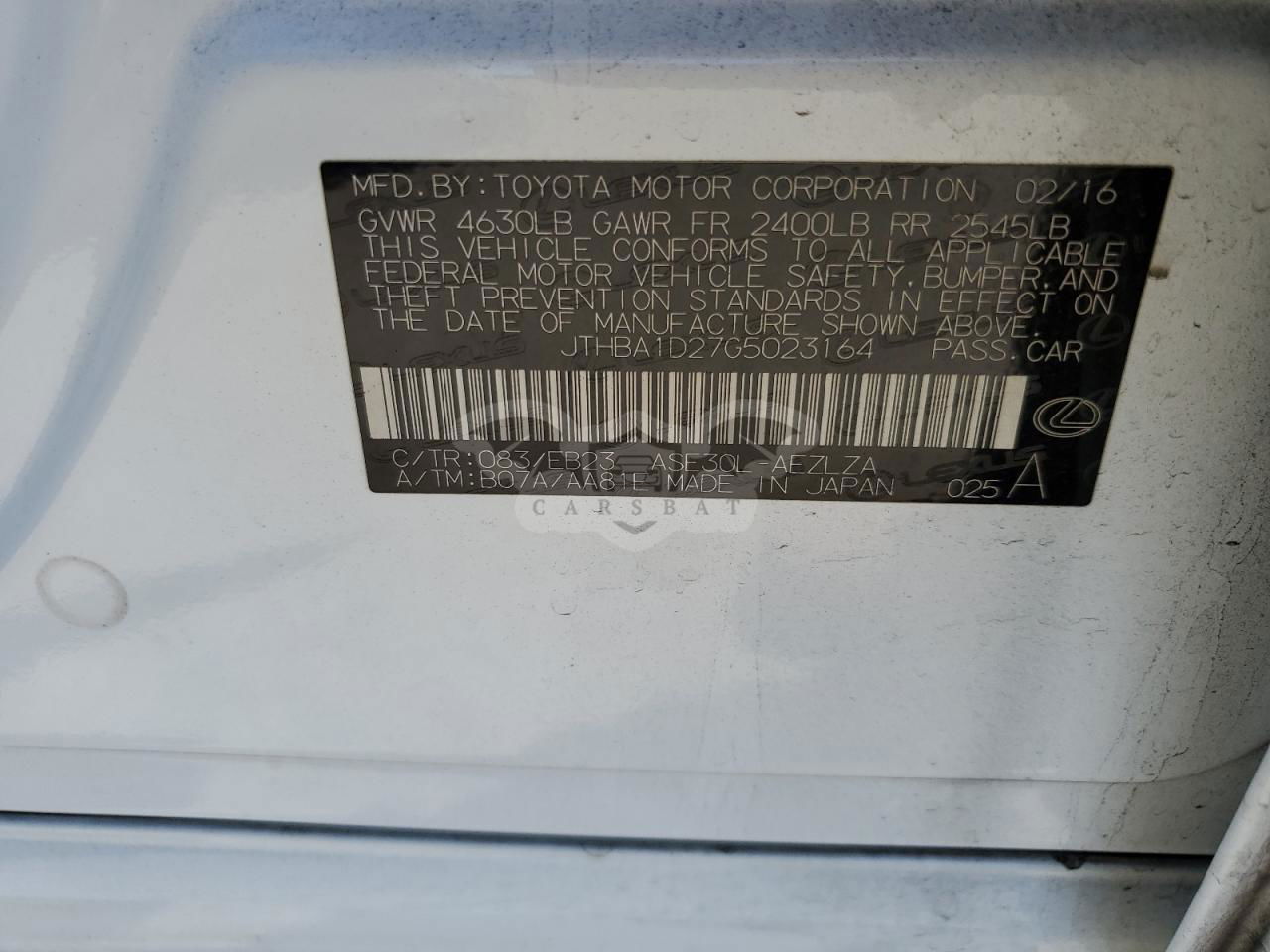 • VIN: JTHBA1D27G5023164