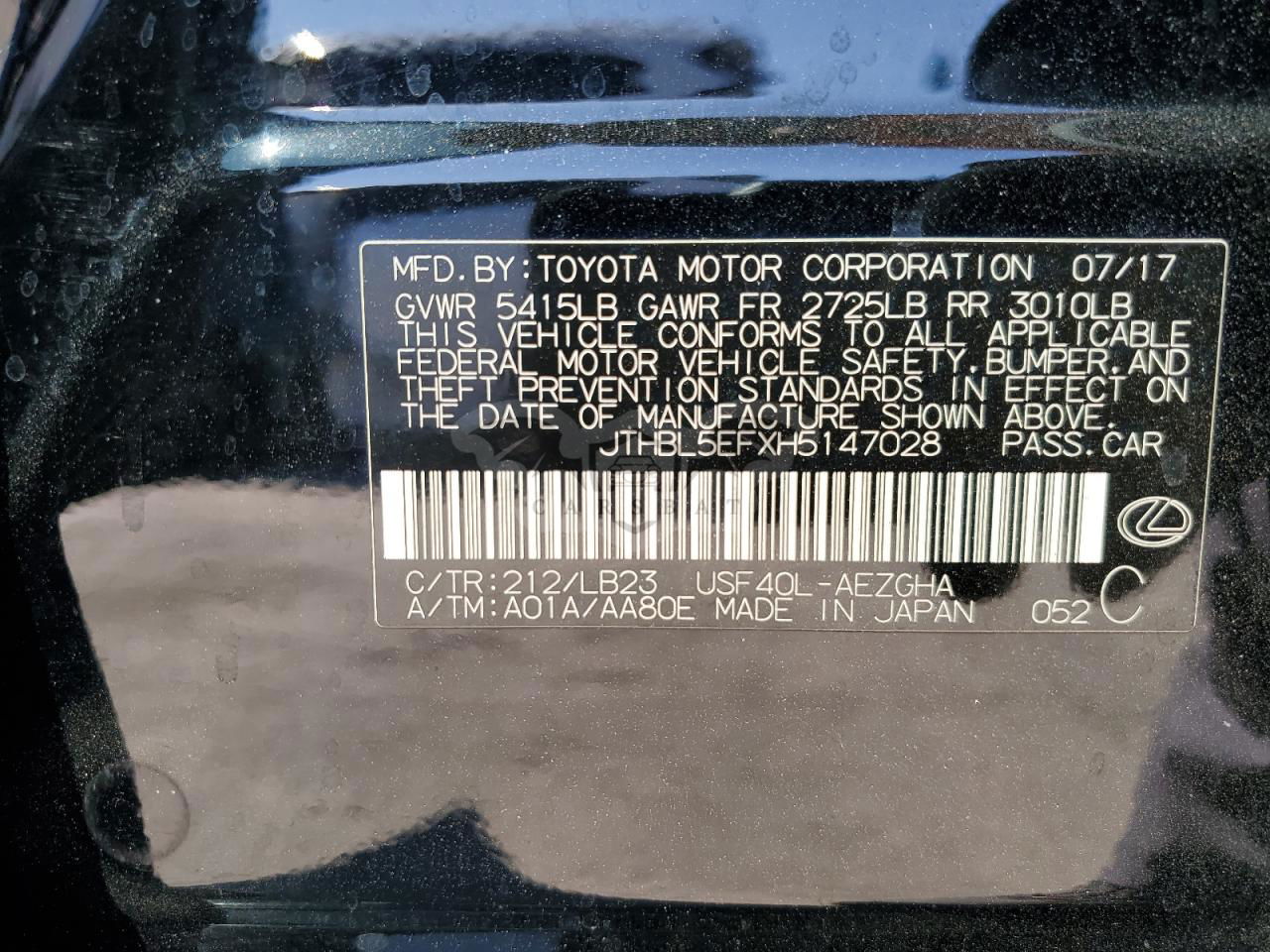 • VIN: JTHBL5EFXH5147028